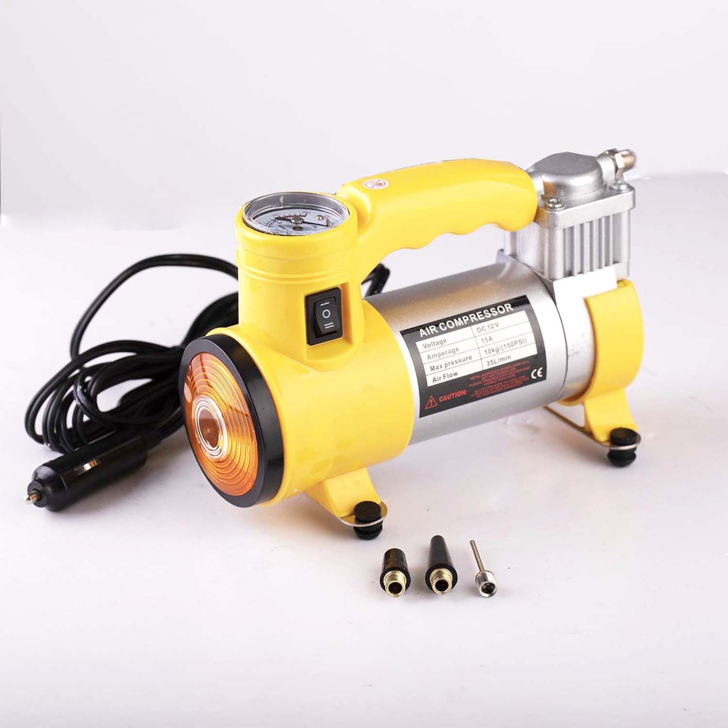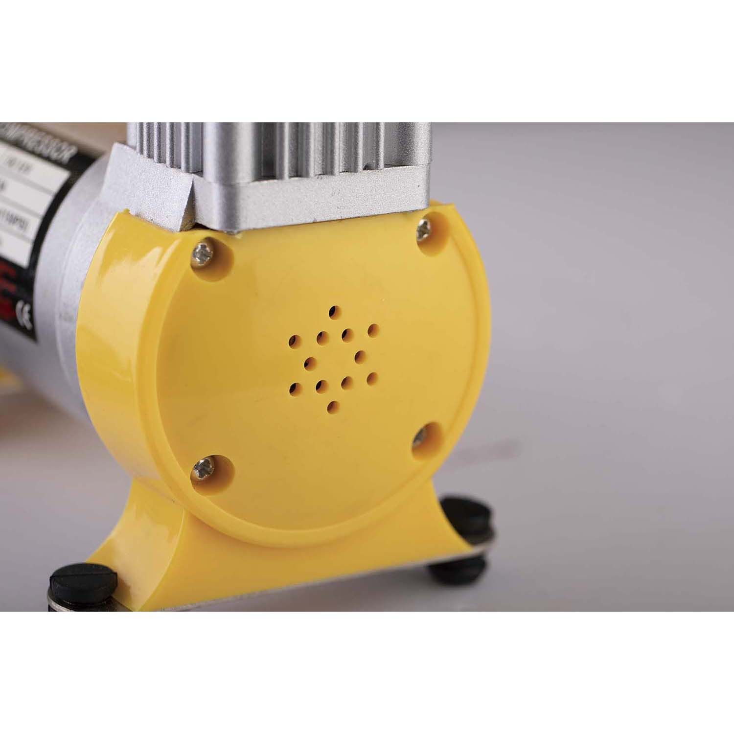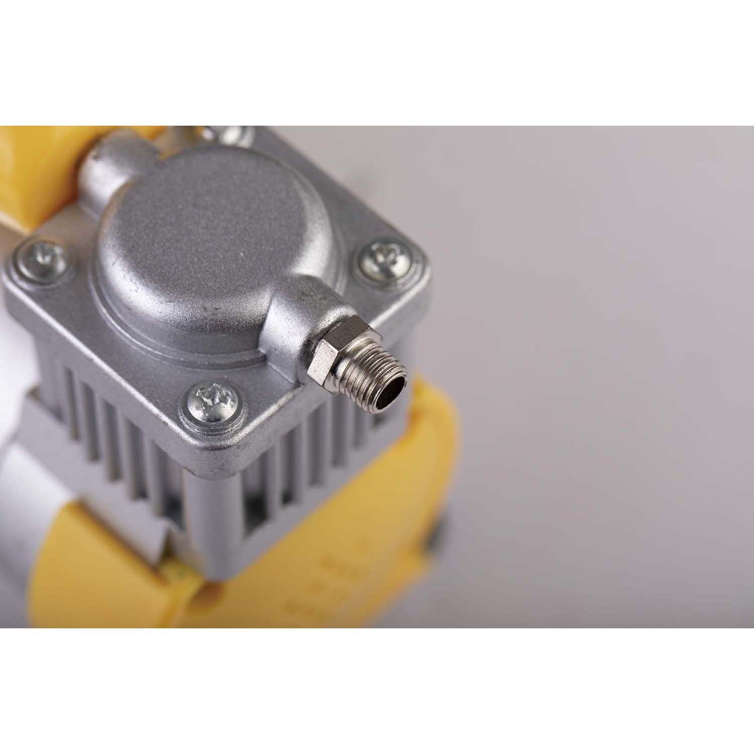 The 12 Volt Heavy Duty Air Compressor Kit has a wide range of uses, such as vehicle tyre inflation, bicycle tyres, balls, inflatable boats and toys etc. It is a heavy-duty air compressor unit, which makes this ideal for use on service vans or in the workshop. Ideal for emergency use on or off the highway, this portable compressor can be neatly and conveniently stored in the storage bag. With its anti-vibration feet for stability and 3-meter fused power cable it will easily reach around the vehicle you are working on. This pump comes with 3 adapters.