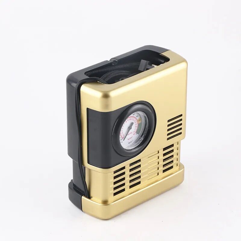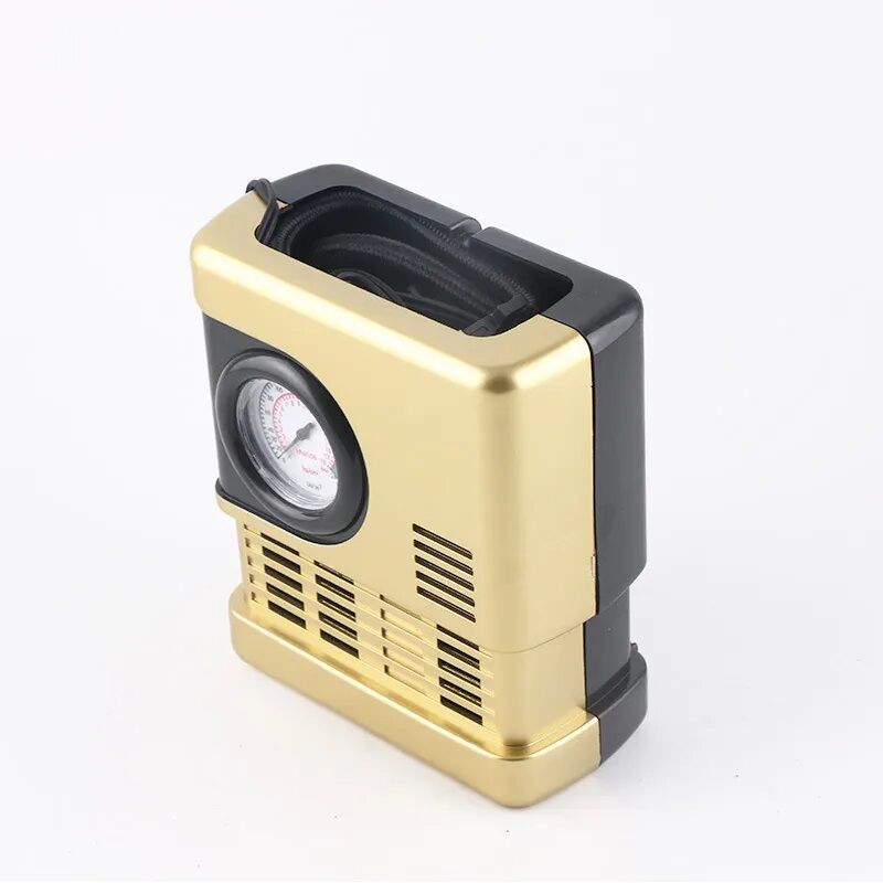 The HL-122 12 Volt Tire Inflator is a portable and powerful travel air compressor designed for quick tire inflation on cars, bikes, trucks, and more, featuring a built-in gauge for precise pressure measurement, a 250PSI max pressure output, and versatile accessories for various inflation needs.