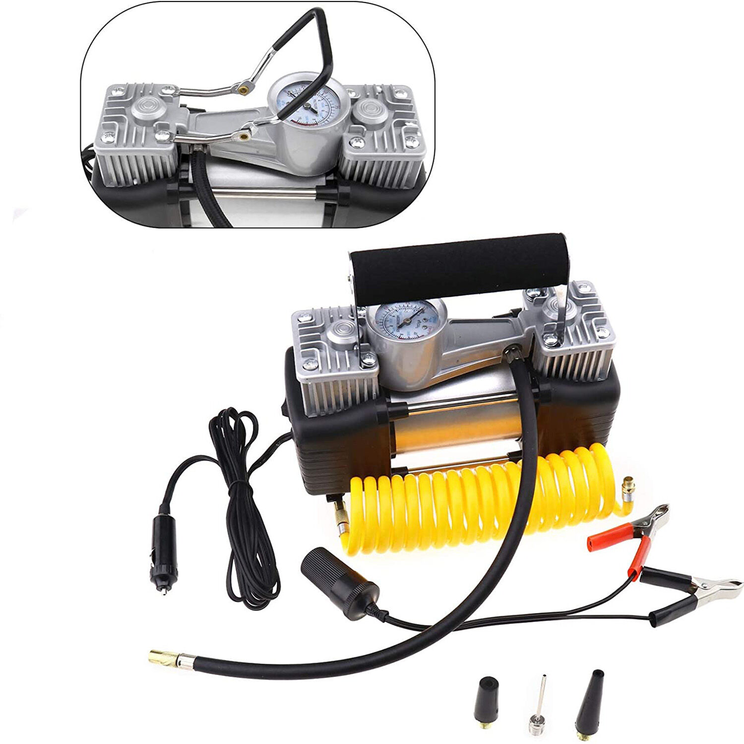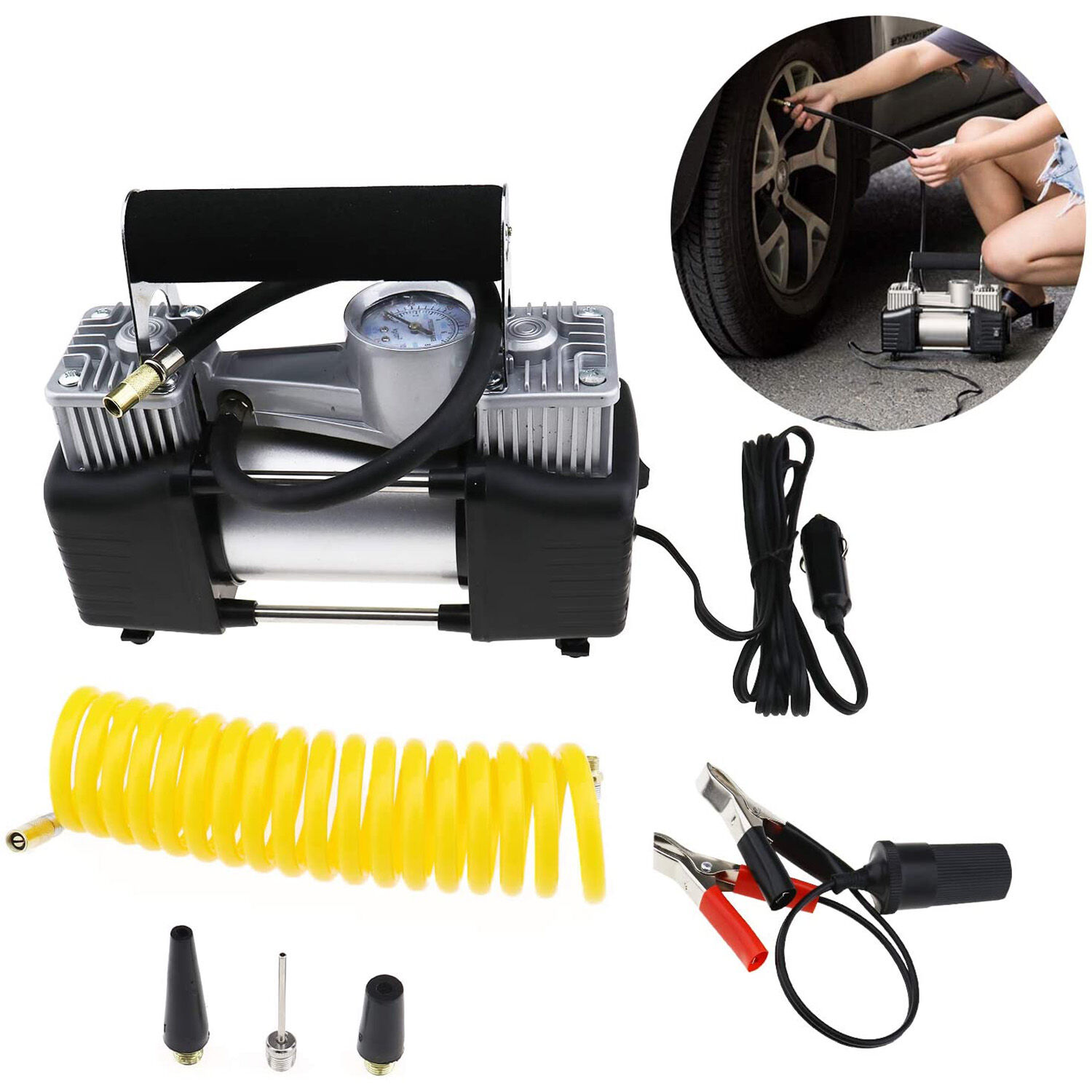 | Description: | Portable Digital Car Tyre Inflator with Gauge 120PSI Auto Shut-Off, Heavy Duty Double Cylinders 12V Pump Air Compressor with LED Light for Auto/Truck |