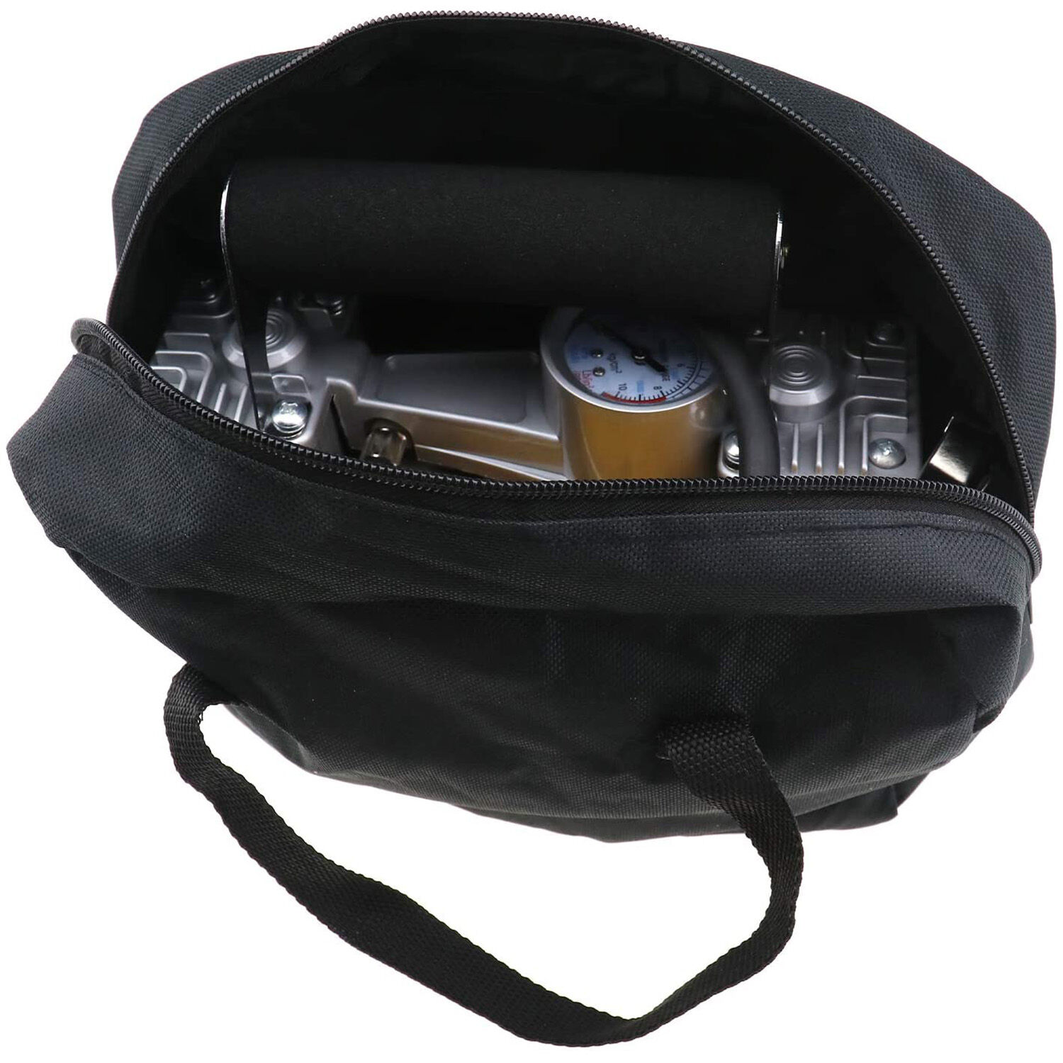 High Performance Selection: Hard wearing & flexible rubber hose. Sponge handle makes your hand feels comfortable, convenient for taking and lifting.Super fast, heavy duty. Emergency tyre inflator. With convenience- portable tool bag and nozzle container.