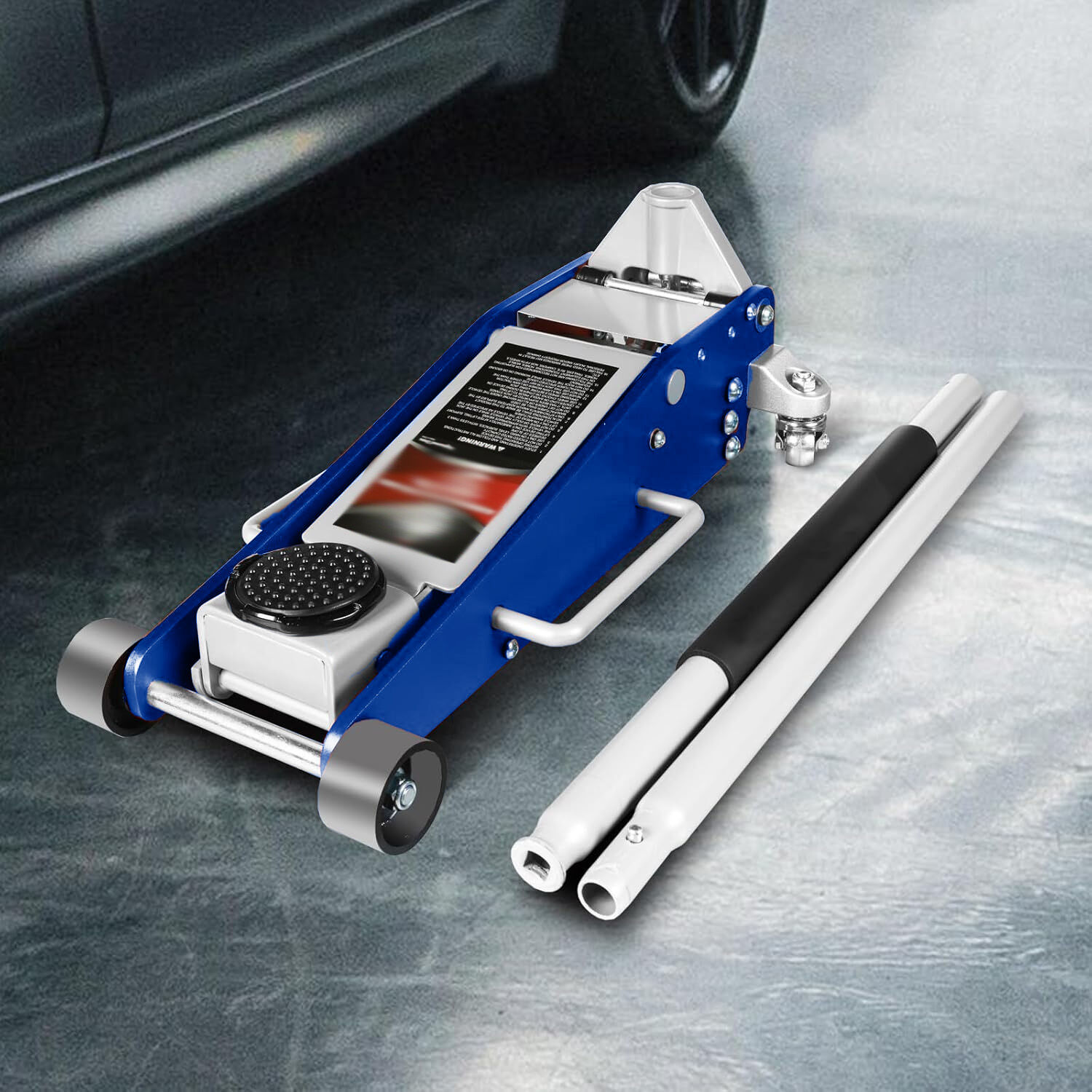 Gato de alta calidad: Gato hidráulico de piso con carretilla de alta calidad de 1.5 toneladas, de construcción duradera y resistente para una larga vida útil. Ideal para elevar automóviles y furgonetas ligeras.
