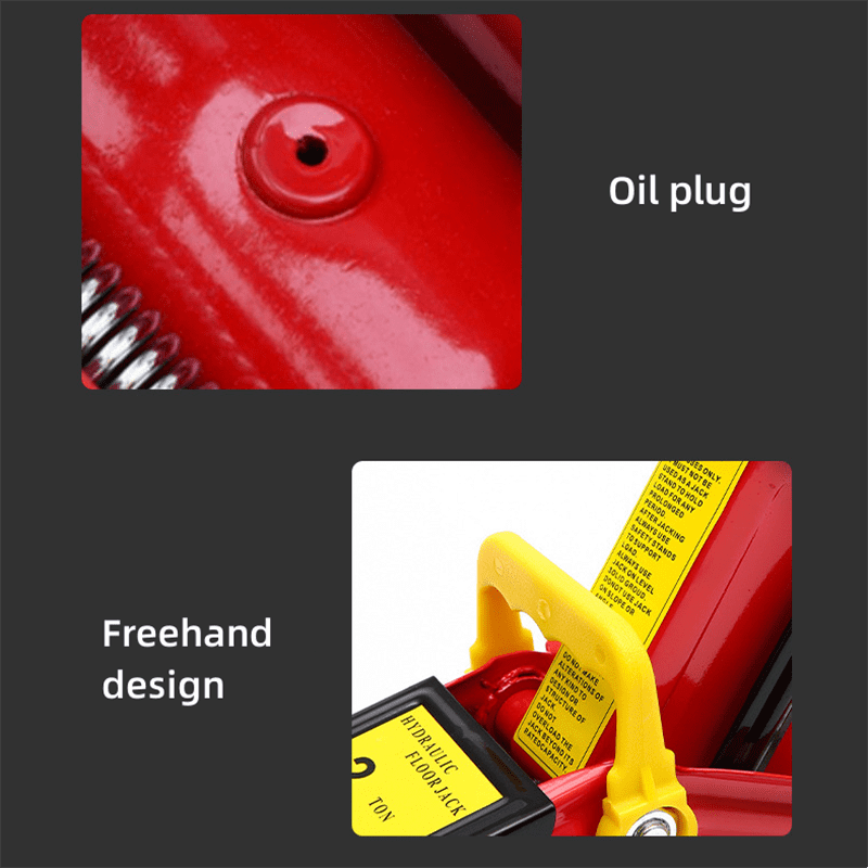Seguridad: Válvula de seguridad integrada para evitar la sobrecarga del gato. El cilindro de aceite está sellado con sellos resistentes al desgaste de alta resistencia, que ofrecen buena resistencia al desgaste y evitan fugas por baja presión.