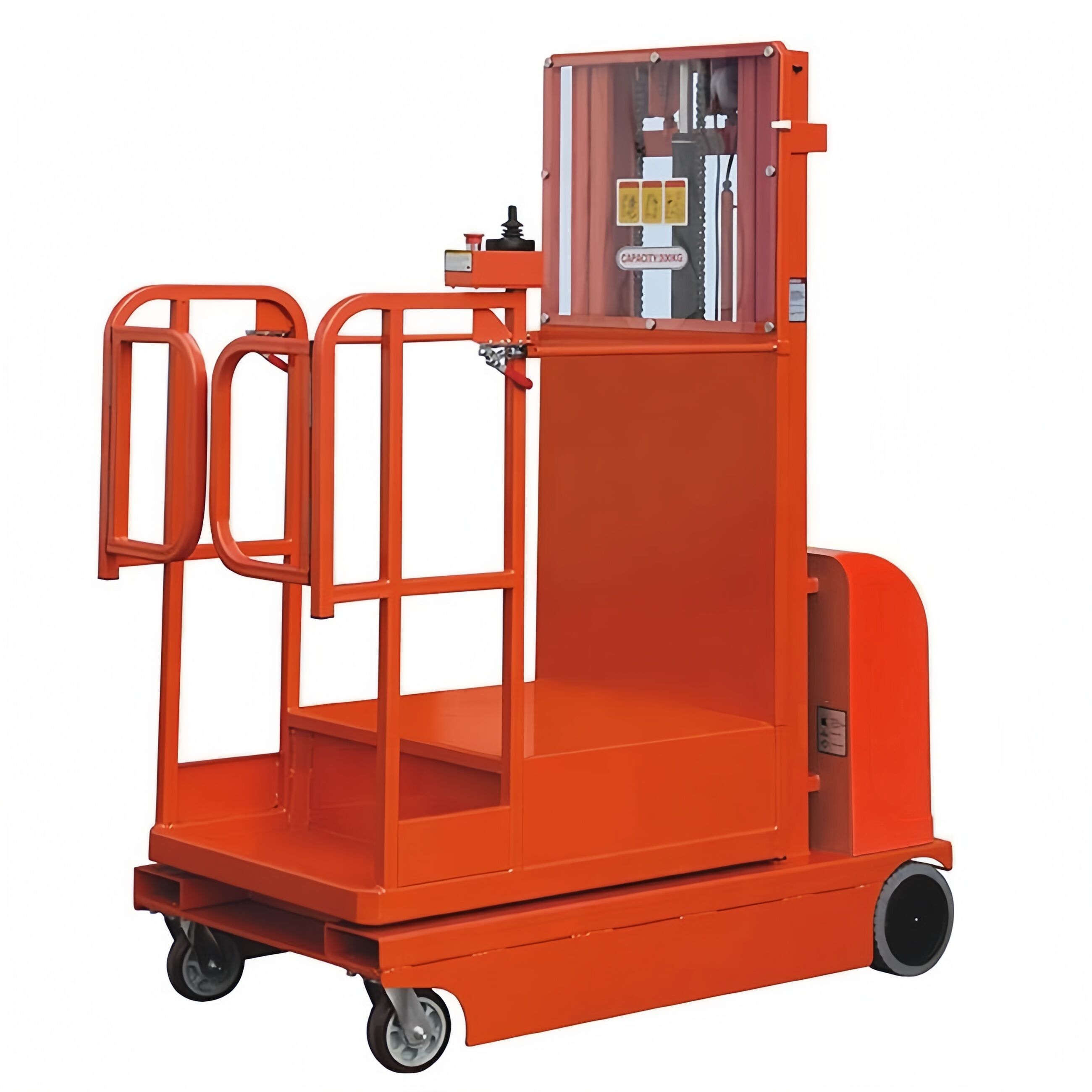Este elevador eléctrico para picker combina un amplio alcance de trabajo de 4 metros con una base extraordinariamente compacta (600 x 700 mm), ideal para espacios reducidos. Su robusta capacidad de 300 kg soporta al operador y las herramientas con estabilidad, reforzada por barandillas de seguridad. Alimentado por eficientes sistemas de baterías de 24 V, garantiza una autonomía prolongada. La tracción independiente y los potentes motores de elevación proporcionan un rendimiento fiable, mientras que un sistema de encendido de dos llaves garantiza un uso seguro y autorizado.