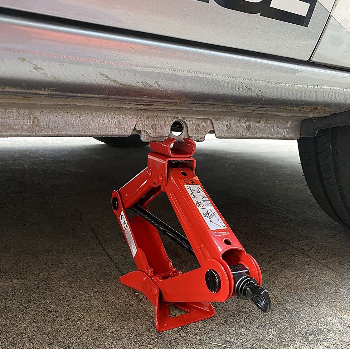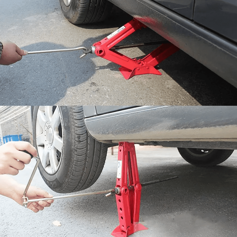 Fácil y rápido: Con el gato de tijera, puede ajustar la altura de sus vehículos fácil y rápidamente. Gracias a su práctico mango de trinquete y al husillo de suave deslizamiento, cambiar neumáticos será pan comido.