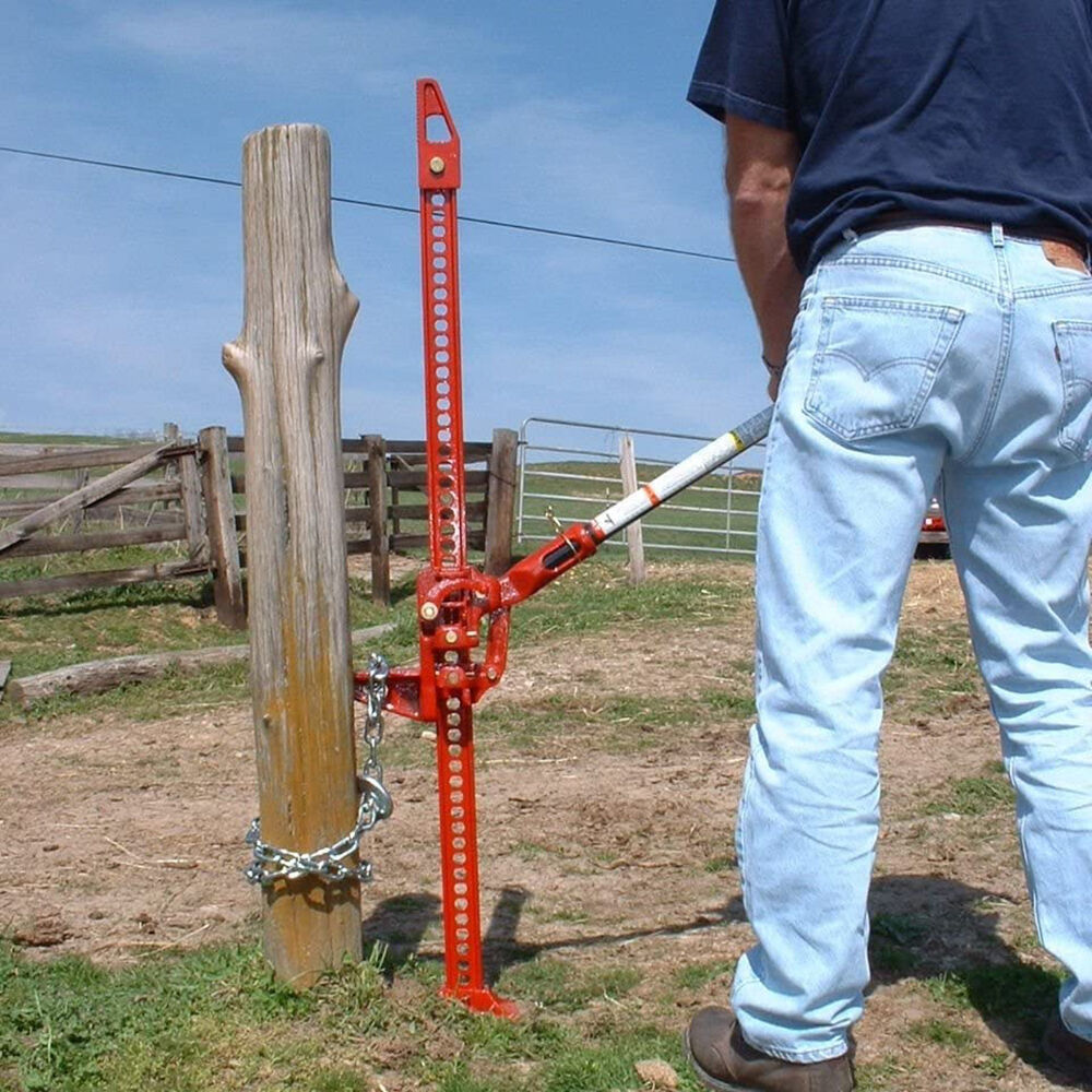 Farm Jack: Lever ratchet operated heavy duty farm jack.