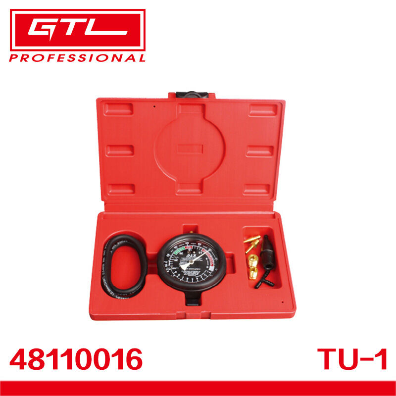 | Incluir | Probador de bombas de vacío y combustible TU-1 Manómetro grande de 3-1/2" de diámetro con escalas de fácil lectura codificadas por colores. Manguera de goma extra larga y resistente y adaptador de colector de 14 mm/18 mm. Comprueba el desgaste o las piezas defectuosas en las bombas de combustible y el sistema de vacío. |