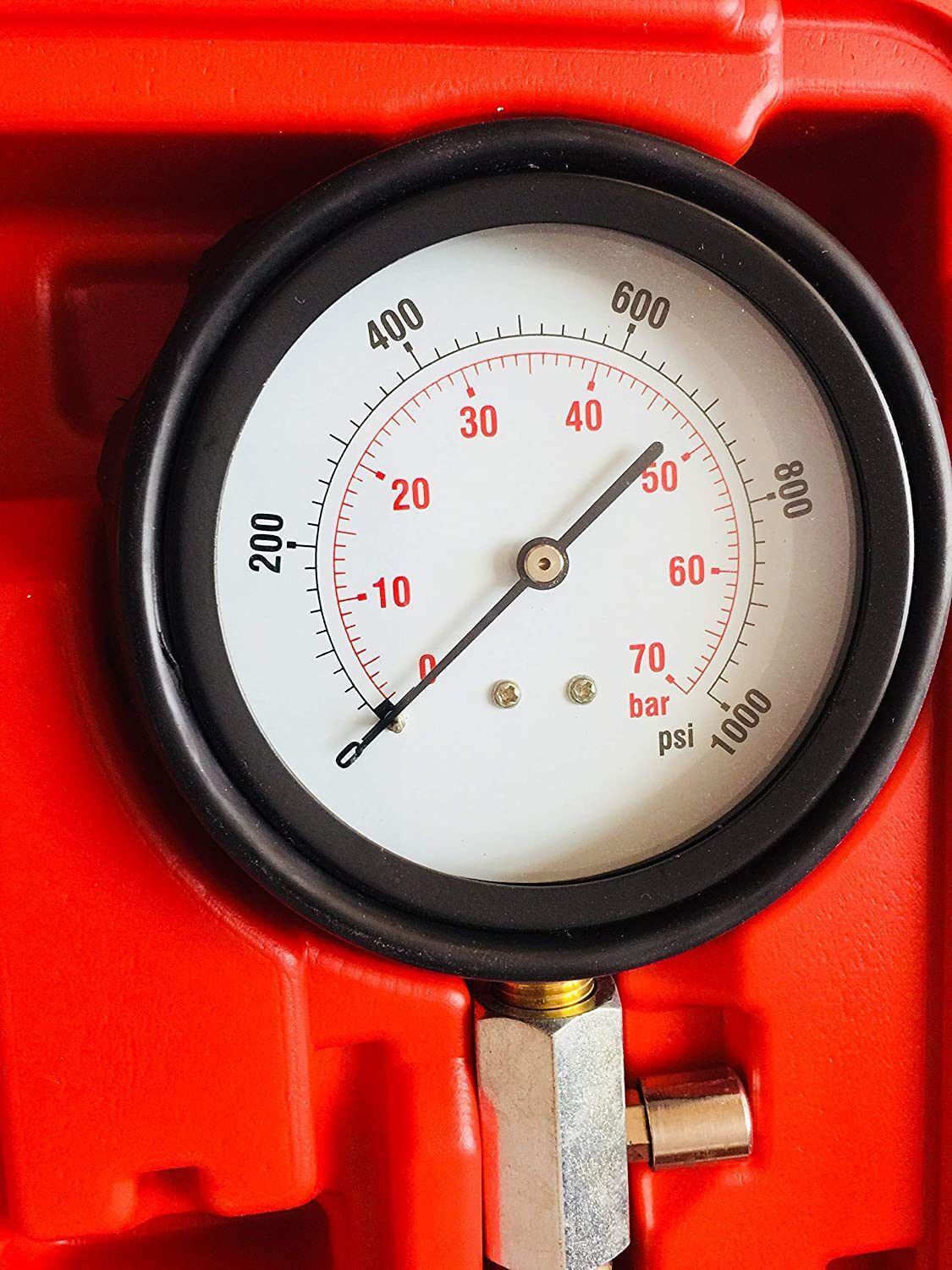 Controlador de Presión/Pulverización de Líquido de la Bomba de Inyección de Combustible: Indica si la bomba de combustible está dañada o presenta un flujo de presión irregular. Incluye numerosos cables, accesorios y calibradores compatibles con una amplia gama de vehículos y cuenta con una escala doble de fácil lectura.