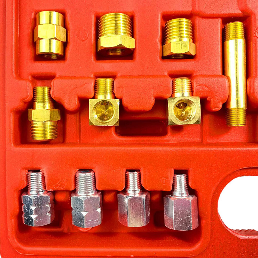 Este completo kit de herramientas para la prueba de presión de combustible está diseñado para proporcionar mediciones precisas y fiables de las bombas de inyección de combustible en una amplia gama de vehículos. Es la herramienta de diagnóstico perfecta para profesionales y mecánicos automotrices que buscan garantizar un rendimiento óptimo y una eficiencia de combustible óptima.