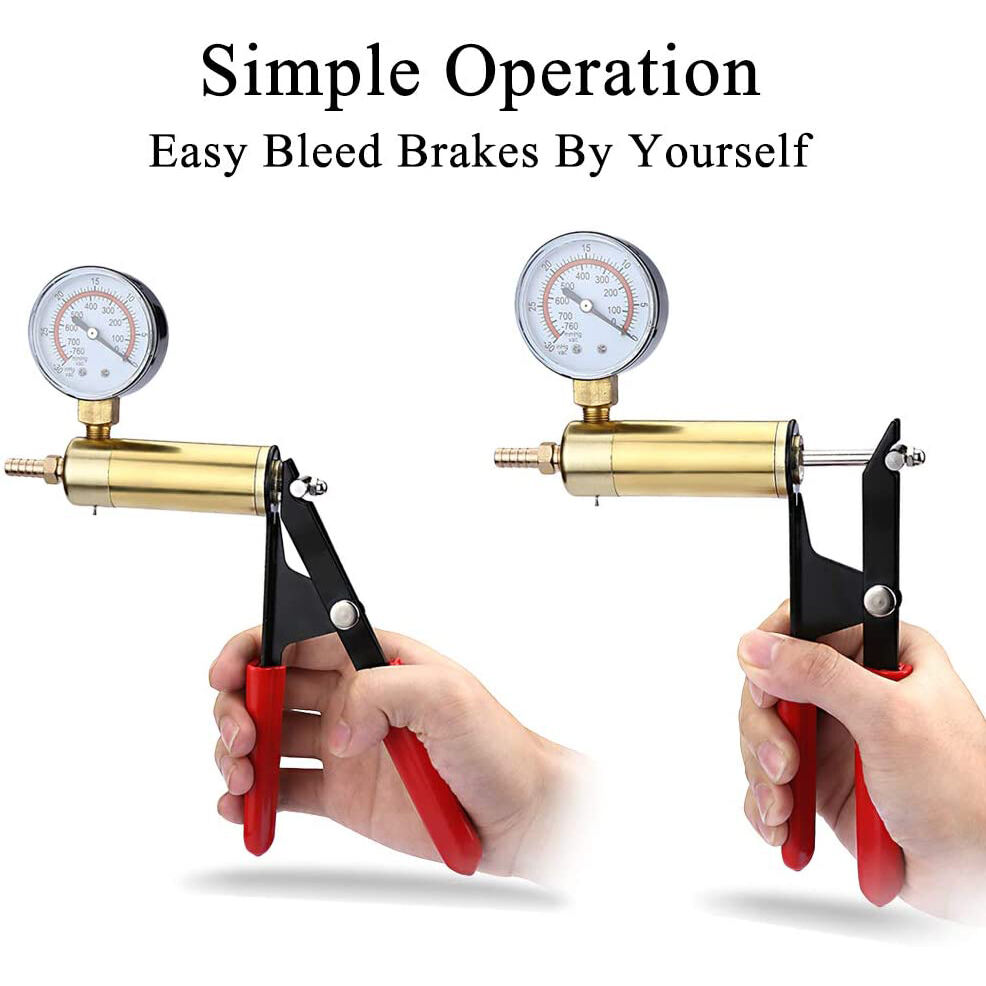 Alta calidad: Cilindro y tapa de bomba de latón. Juntas de culata, anillos de pistón de goma y válvula reemplazables. Mango metálico robusto con dispositivo recolector de líquido de frenos y una variedad de conectores para satisfacer las diferentes necesidades de los clientes.