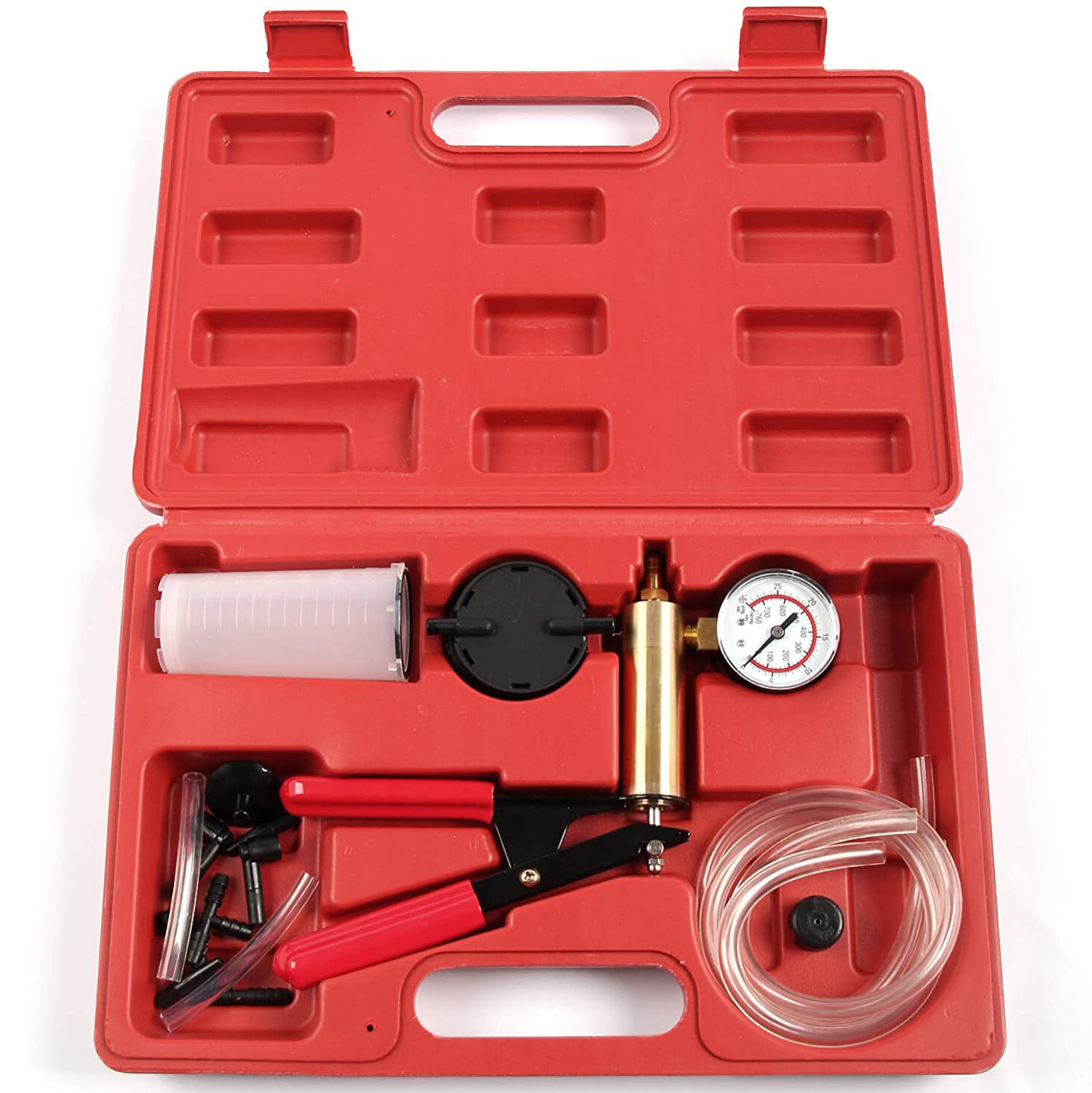 | Description: | Hand-held Vacuum Pump Tester Set Brake Fluid Bleeding Kit Tester with Vacuum Gauge Adapter for Automotive Car Motorbike Motorcycle Red |