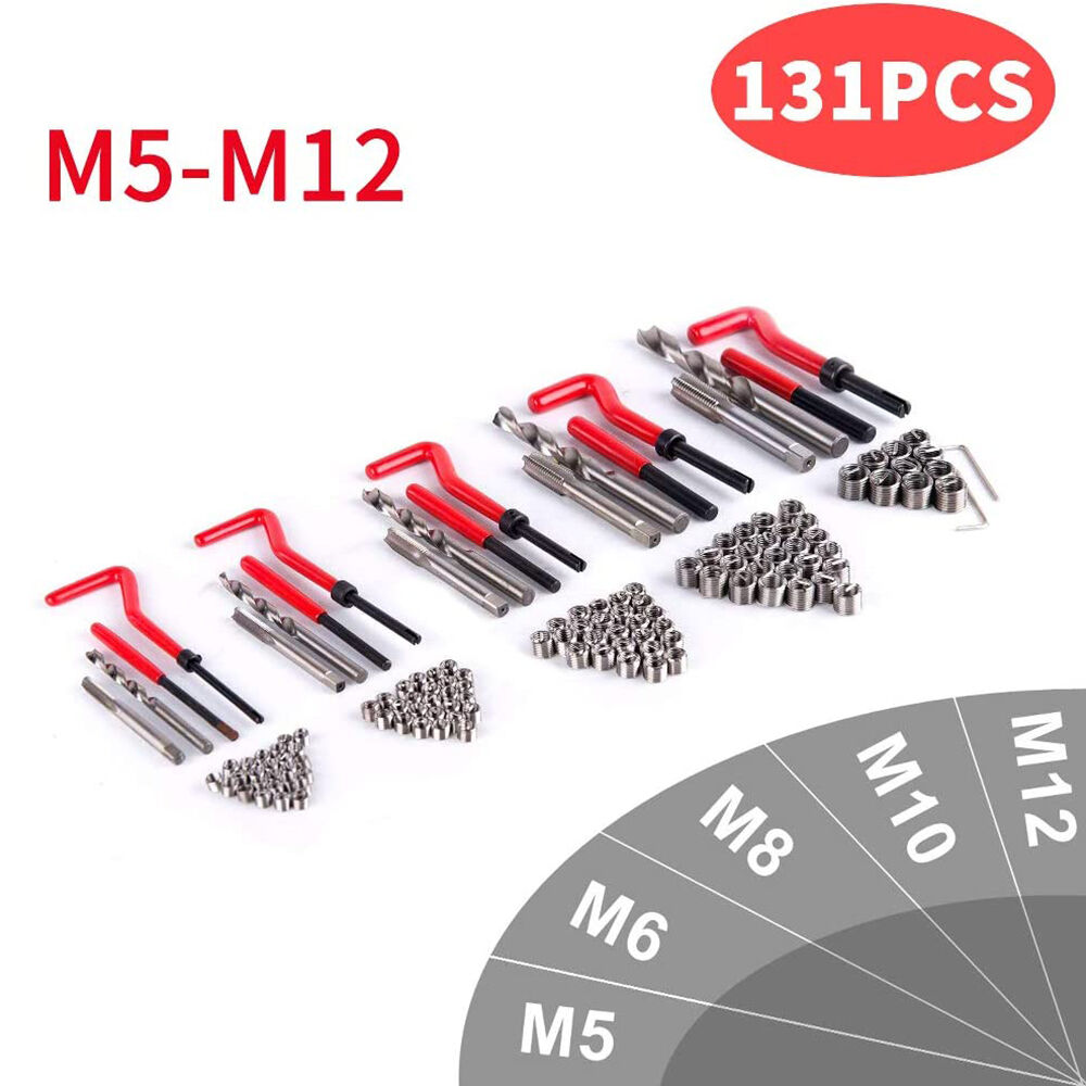 | Description: | 131pcs M5/M6/M8/M10/M12 Garage Insert Drill Helicoil Screw Repair Kit Compatible Hand Tool Set Thread Repair Set for Car/Auto repairing |
