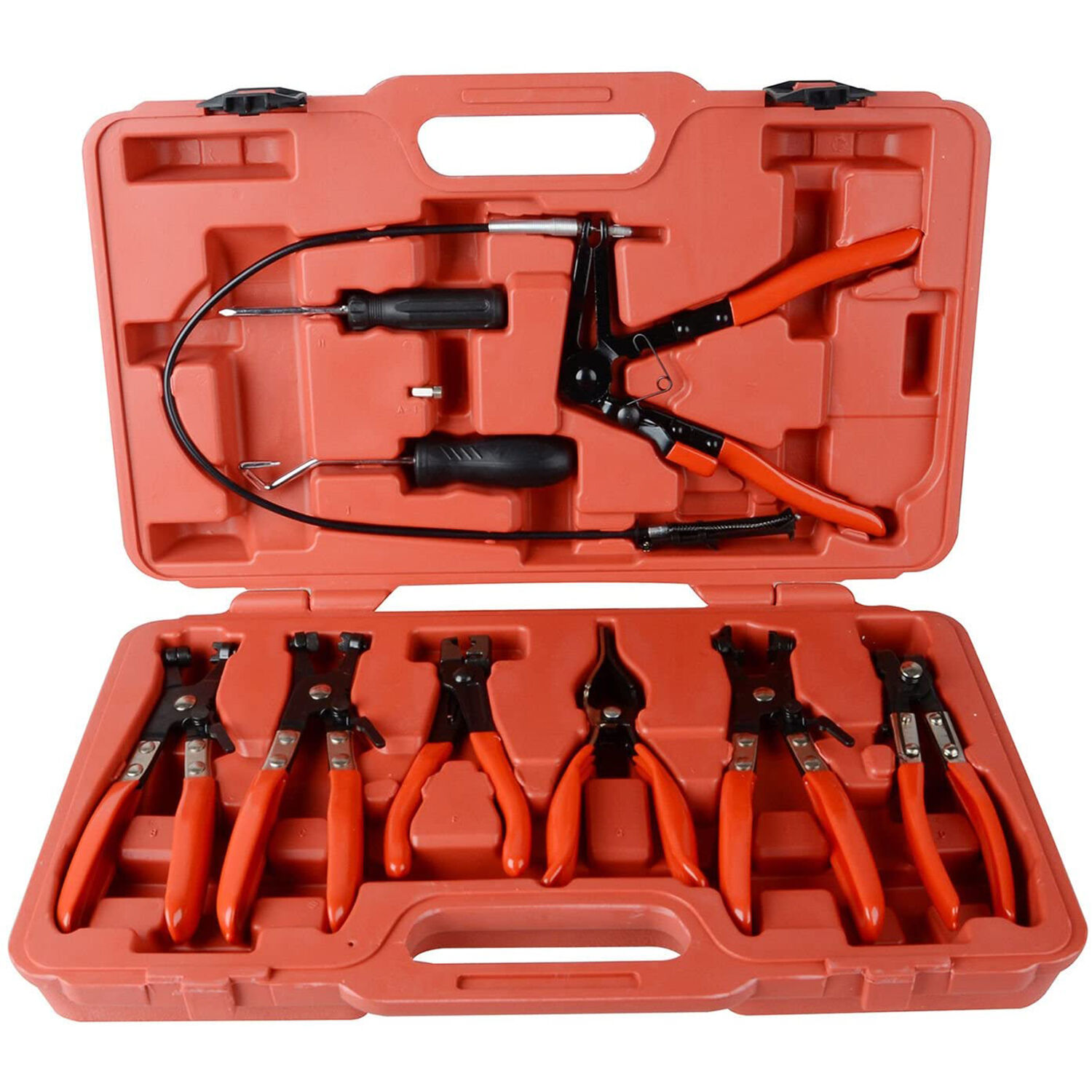 | Package Include: | 1 * Hose Clamp Plier 1 * Swivel Jaw Spring Wire Clip Plier 1 * Swivel Jaw Band Cliper Plier 1 * Angled Flat Band Hose Cliper Plier 1 * Hose Remover plier 1 * Click-R Collar Plier 1 * Flat Band Hose Cliper Plier 1 * Screwdriver 1 * Hose Remover 1 * Red Plastic Box |