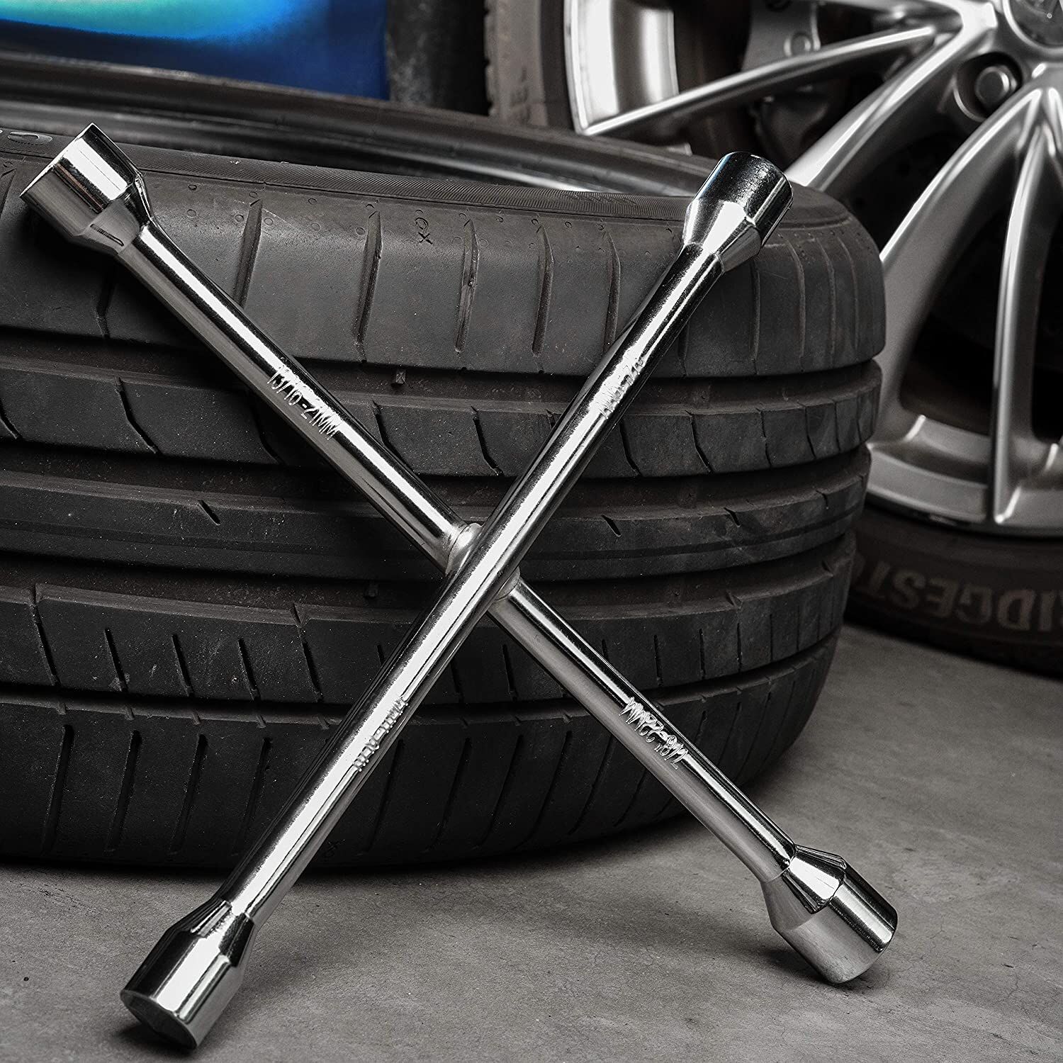 | Description: | 20" 4 Way Cross Wheel Nut Rim Wrench for Cars with Common Hexagonal Lug Socket Sizes 17,19,21,23mm |