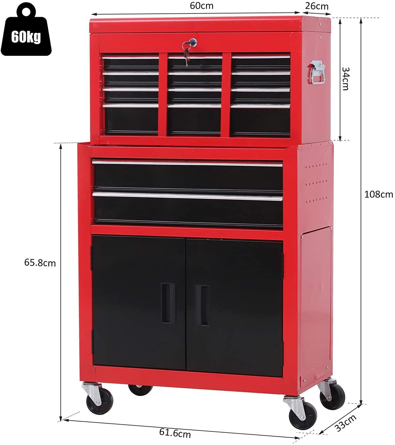 Enhanced Safety: The top tool chest comes with an inner lock and includes two keys for secure access.