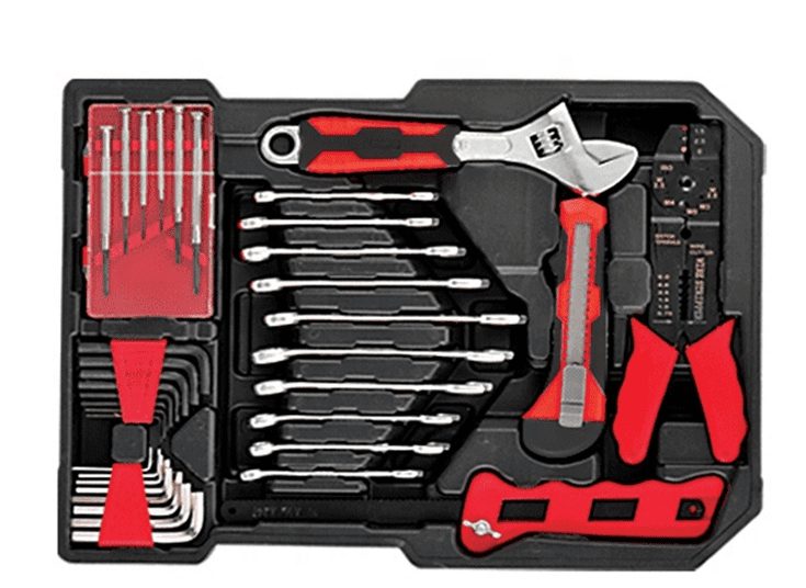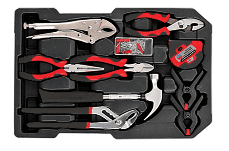 2)The metal part of the hand tool set which is moisture-proof and corrosion-proof thanks to the carbon steel material and the heat-treated technique forging to ensure solid and durable quality. Heavy duty quality it is worth to be owned.