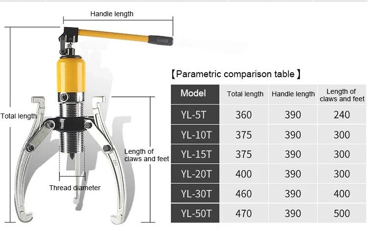 Durabilidad y fiabilidad: El cuerpo del extractor está forjado con acero de alta calidad y fundido en una sola pieza, eliminando la necesidad de anillos de sellado y evitando fugas de aceite. El cilindro hidráulico también está engrosado para proporcionar una excelente resistencia a la presión, garantizando un rendimiento duradero incluso bajo uso intensivo.