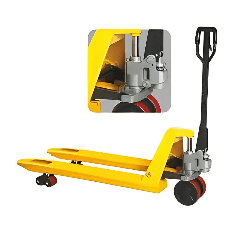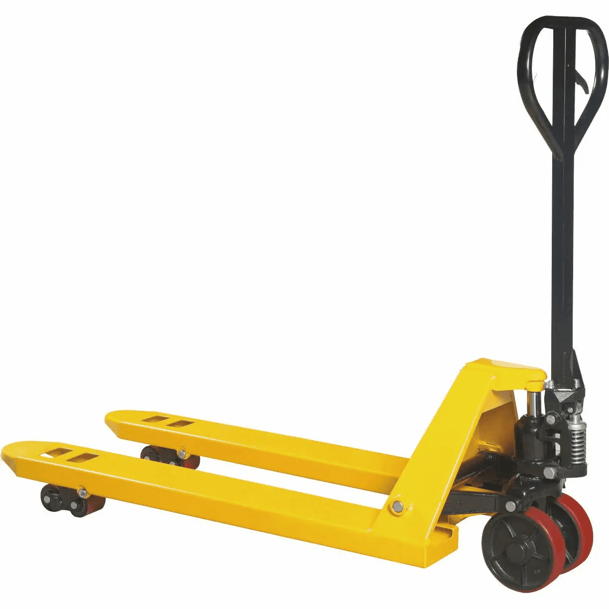This heavy-duty pallet truck is not only built to last but also to enhance your workflow efficiency. With its smart features and technical prowess, it's the perfect addition to any logistics or warehouse operation looking to optimize their material handling processes. Elevate your material handling operations with our robust 2500kg Heavy Duty Hand Pallet Truck, designed to provide exceptional performance and reliability in your warehouse or logistics environment. This manual pallet truck is equipped with a high-capacity hydraulic pump, ensuring smooth and efficient lifting and lowering of your goods.