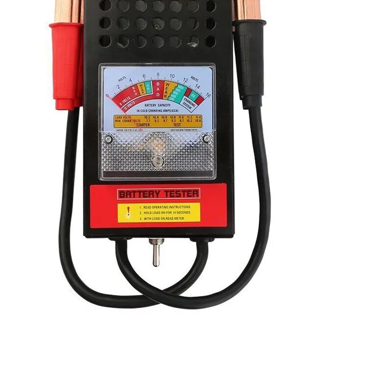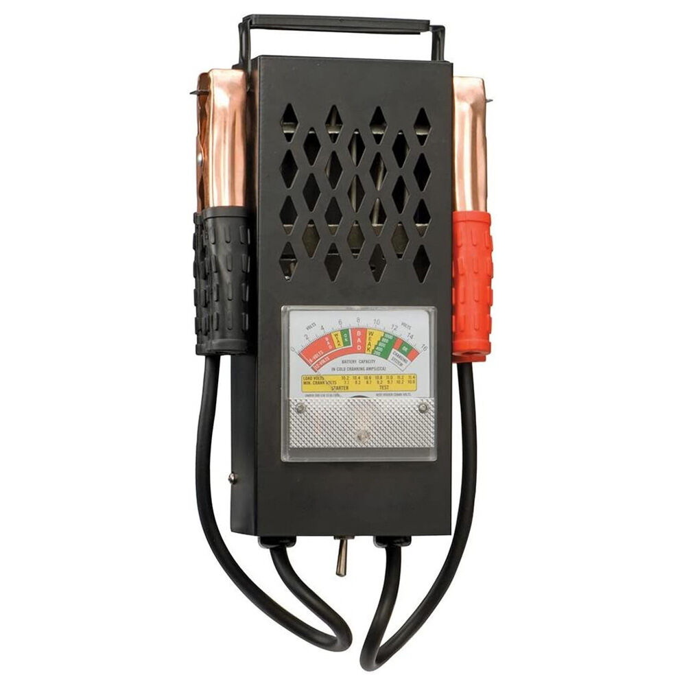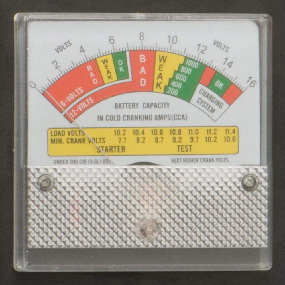 Comprobador de batería y alternador: Obtenga una lectura fácil con nuestro analizador de batería. El medidor resistente a impactos está alojado en una caja de acero; también funciona como comprobador de alternador y le indica fácilmente si su alternador está cargando correctamente la batería.