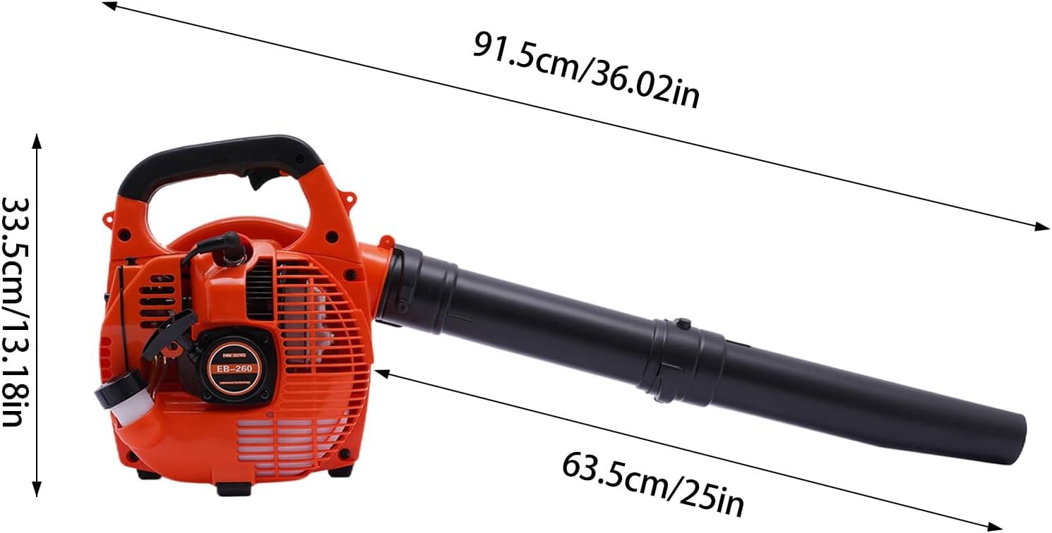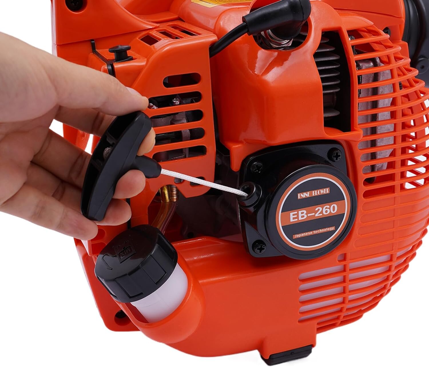 A hand held gasoline blower EB260BW is a portable, gas-powered tool designed for clearing debris such as leaves, grass clippings, and other light materials from surfaces like lawns, sidewalks, and driveways.It is an essential tool for anyone in need of a powerful, efficient, and portable solution for outdoor debris management.