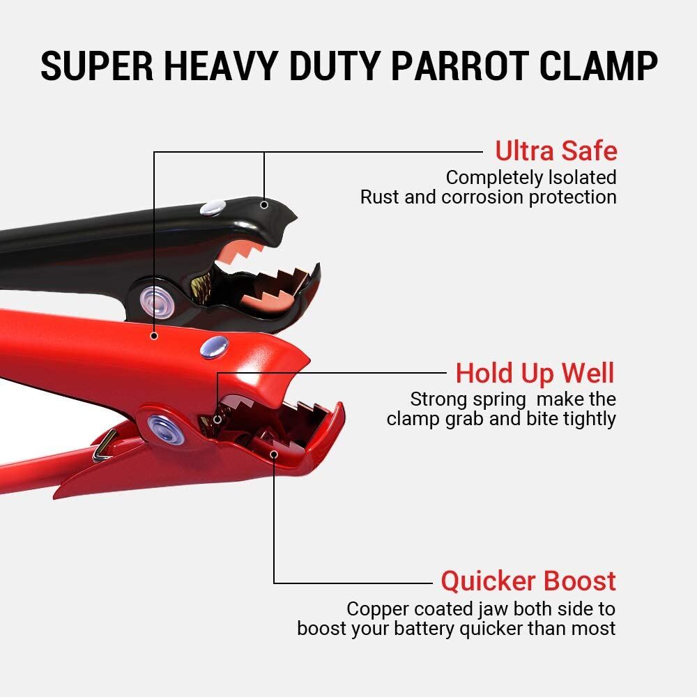 2) The clamps with strong jagged teeth and springs for excellent and strong jaws makes good grip force and connection easy with better conductivity and tension. Suitable for various car battery end