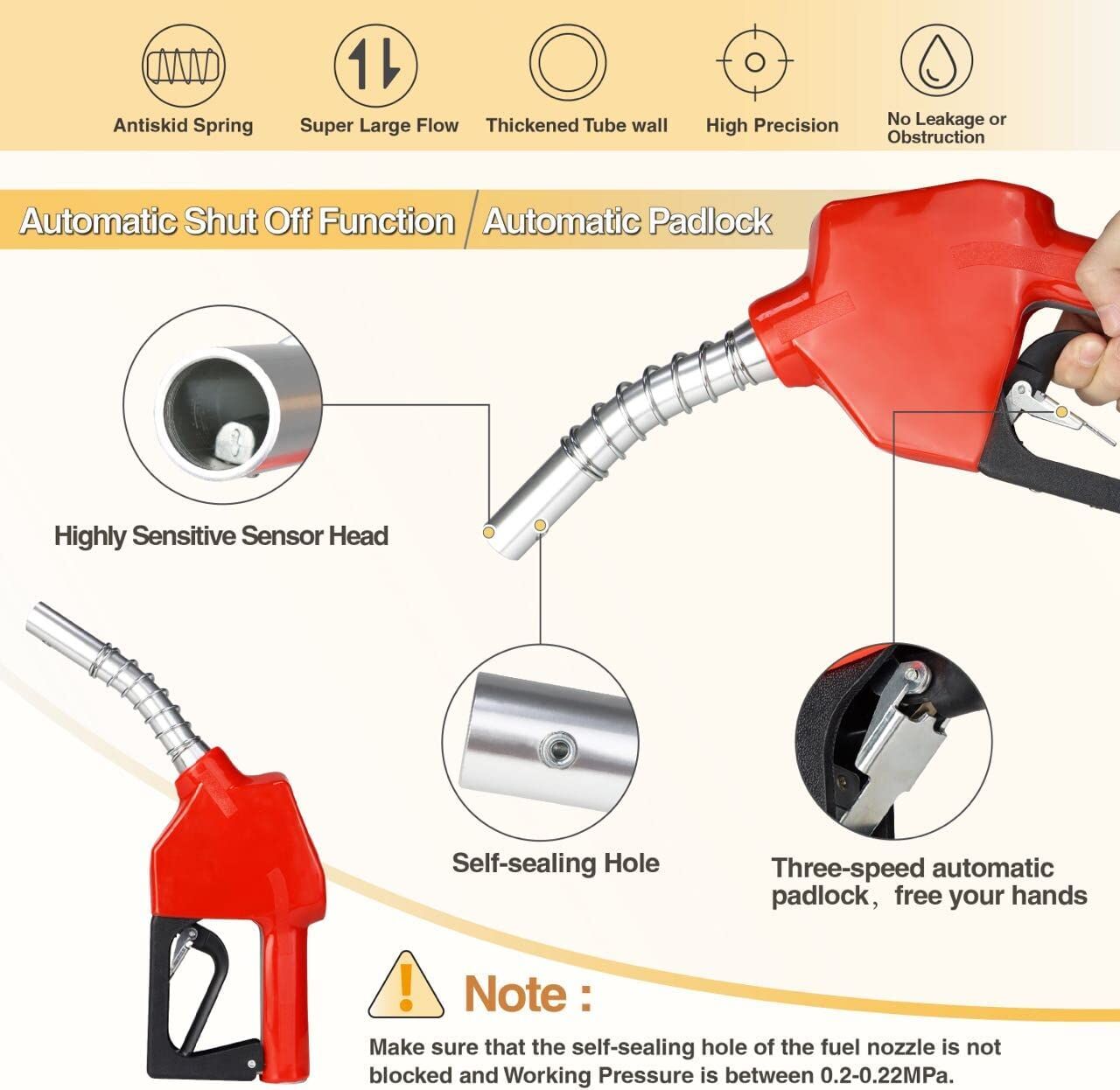 Automatic nozzle: Durable nozzle made of stainless steel, ergonomic handle and automatic design to prevent leakage, inlet and outlet size is 3/4.
