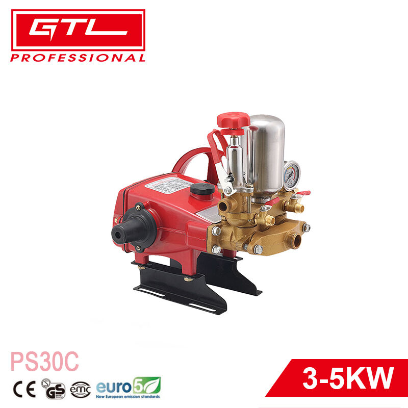 This agriculture sprayer pump features a working pressure of 10-40pa, 3×30mm plungers, 20mm stroke, and rotation capacity of 800-1000rpm, delivering 30-40L/min output with 3-5KW power requirement and CE/EMC certification.