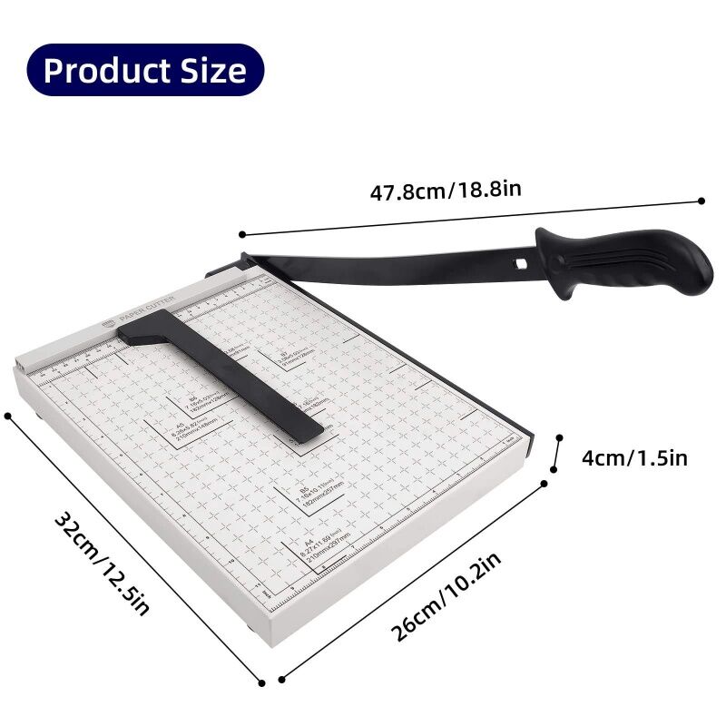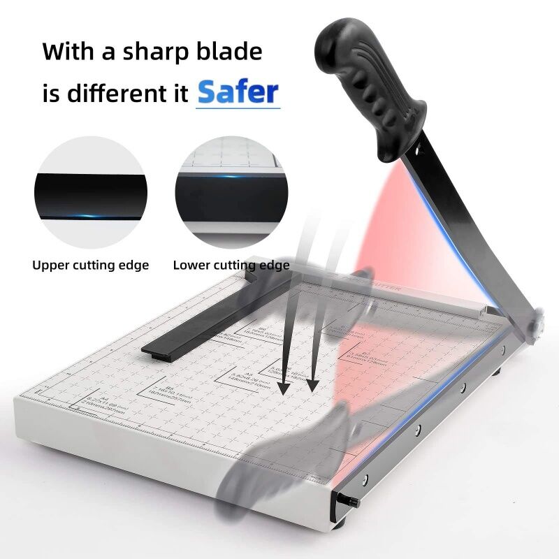 Precise & Safe Operation: Guillotine blade ensures clean cuts; includes a cutting guide, safety lock, and non-slip base for stability.