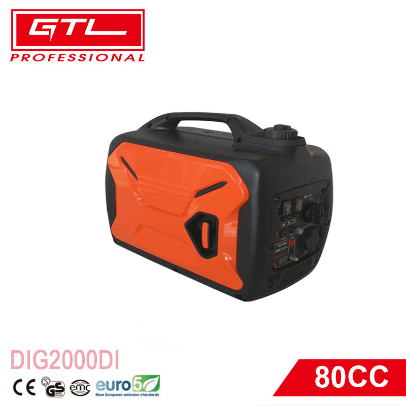 The GTL digital inverter gasoline generator is a compact, high-performance unit with 1.6KW rated and 1.8KW max AC output, supporting 110-240V. It features an 80cc 4-stroke engine, 5.5L fuel tank, 69dB noise level, and pure sine wave power, ideal for home, outdoor, and sensitive device use.