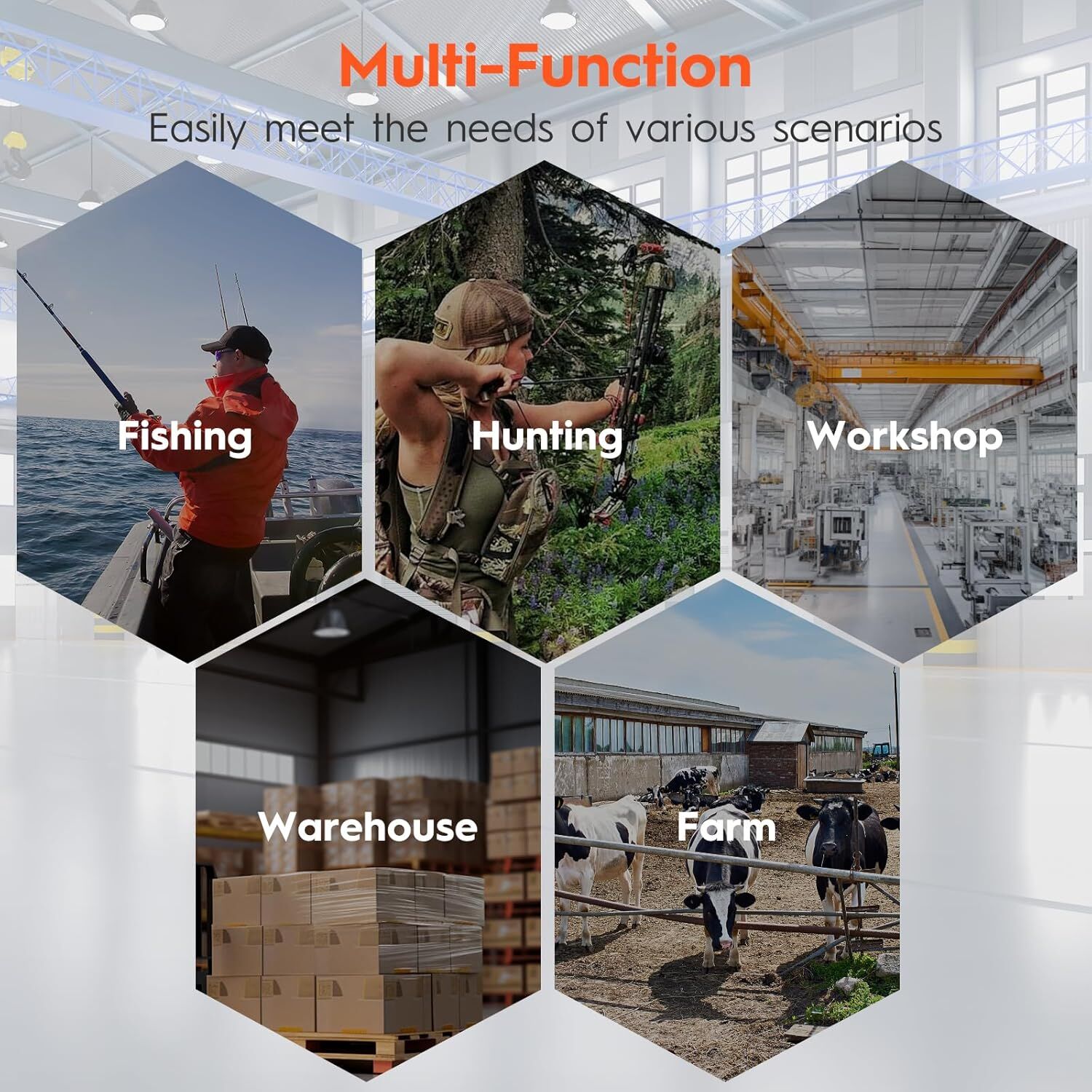 Versatile & Power Efficient: Its strong capacity makes it suitable for numerous applications, from industrial warehouses to farms and travel. It operates on standard AA batteries and features auto-shutdown and a low-battery indicator for convenience.