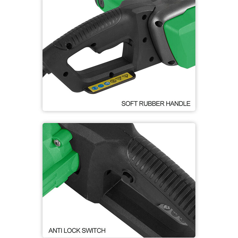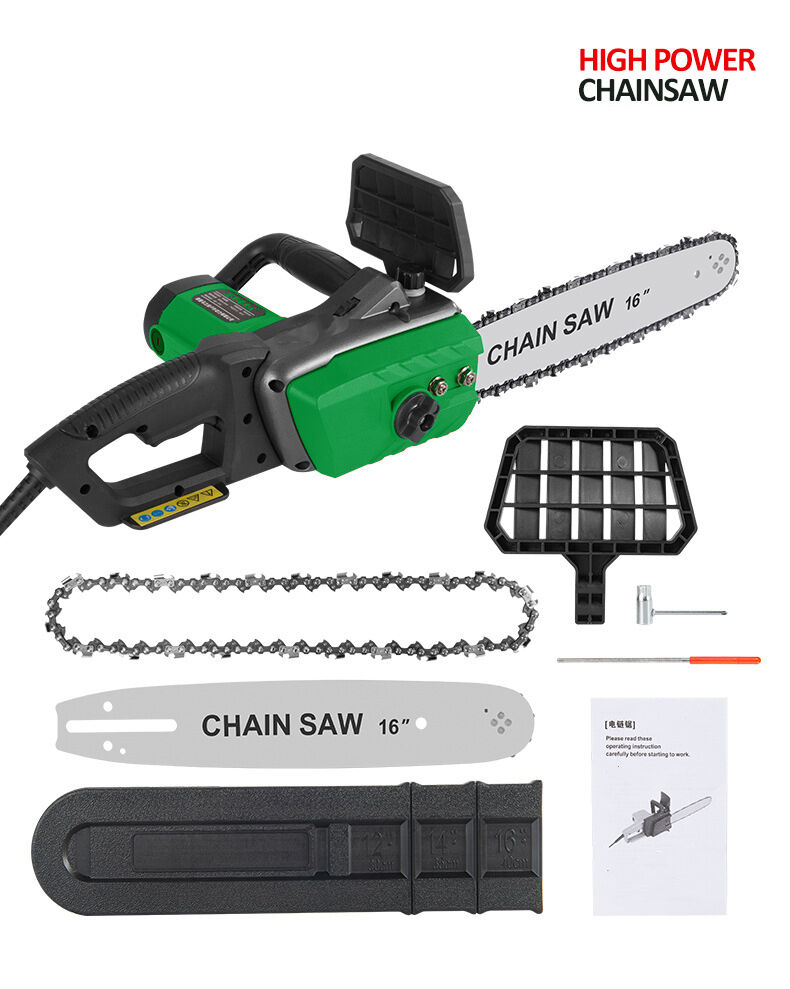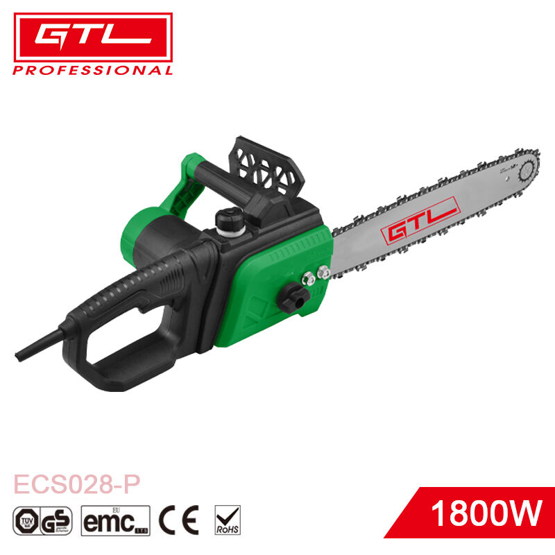 This electric chain saw ECS028-P is designed for versatility with its dual voltage input, ensuring it can be used in various regions with different power standards.