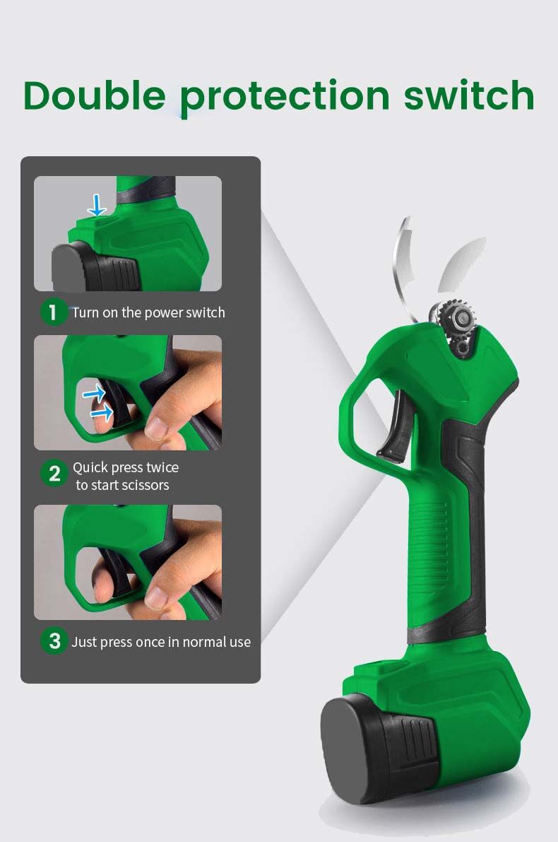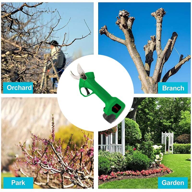 Aplicable a múltiples escenarios: La podadora eléctrica es ampliamente utilizada en jardines, parques, granjas, pastos, huertos frutales, invernaderos, corte de uvas, cerezos, manzanos, etc.