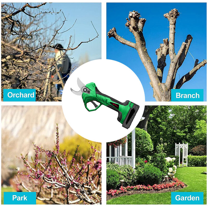 Aplicable a múltiples escenarios: La podadora eléctrica es ampliamente utilizada en jardines, parques, granjas, pastos, huertos, invernaderos, corte de uvas, cerezos, manzanos, etc.