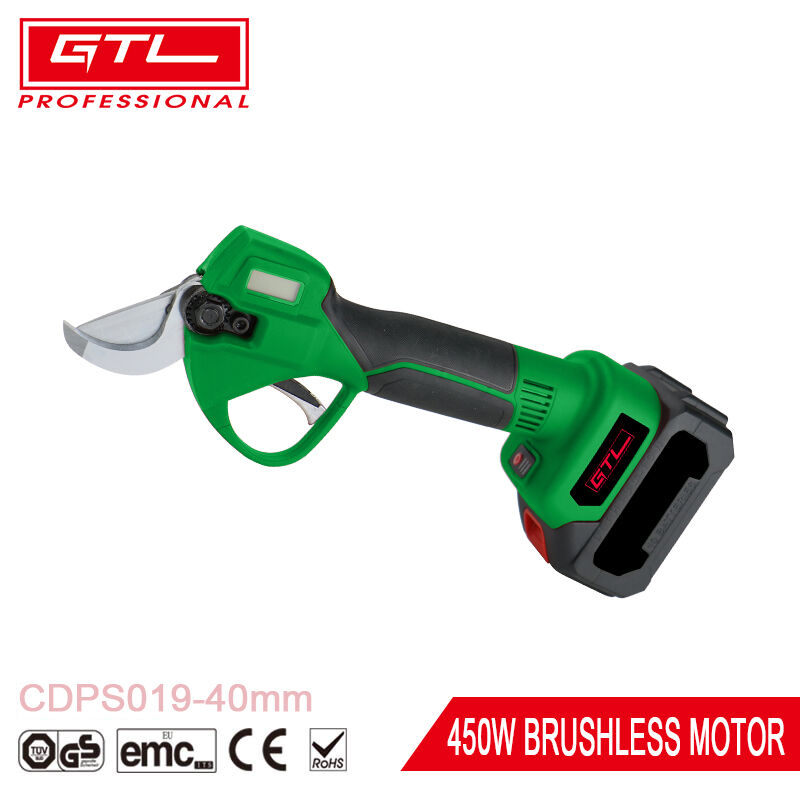 La tijera de podar electrónica es una herramienta de jardinería liviana y de alta eficiencia con un motor sin escobillas de 450 W, una hoja de acero japonés SK5 duradera, una batería de litio de 2,0 Ah de larga duración y una pantalla LCD fácil de usar para cortes de precisión y uso prolongado.