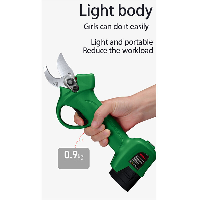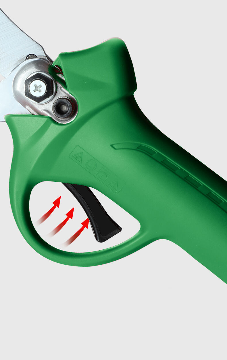 La tijera de podar eléctrica es una herramienta hortícola de alta calidad, ideal para podar árboles frutales, viñedos, zonas verdes, arbustos, alrededor de villas, granjas y parques. También puede cortar materiales como plástico, alfombras, goma y cuerdas, ideal para invernaderos y floristerías. Con amortiguación y características antideslizantes, la herramienta está diseñada para un uso prolongado sin fatiga en las manos, e incluye protección para los dedos y una función progresiva para facilitar su uso. El motor sin escobillas ofrece una alta velocidad de corte y un tiempo de trabajo prolongado, mientras que su diseño ergonómico y sus características de seguridad garantizan una experiencia cómoda y segura para los jardineros.