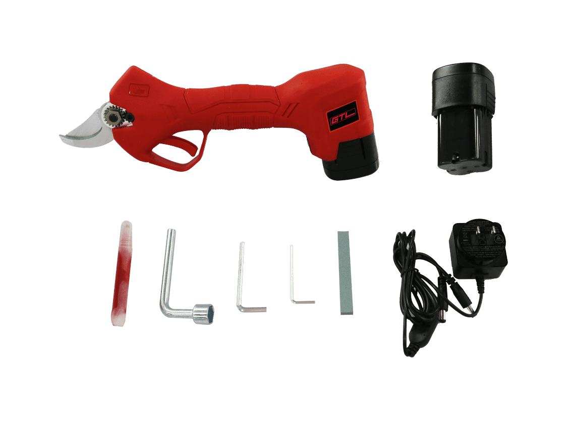 Cuchilla afilada que corta con suavidad: La cuchilla de esta tijera de podar eléctrica inalámbrica está forjada en acero de alto carbono SK5. Este material es duradero y afilado, lo que permite cortar ramas de hasta 25 mm de diámetro con suavidad y sin dañarlas.