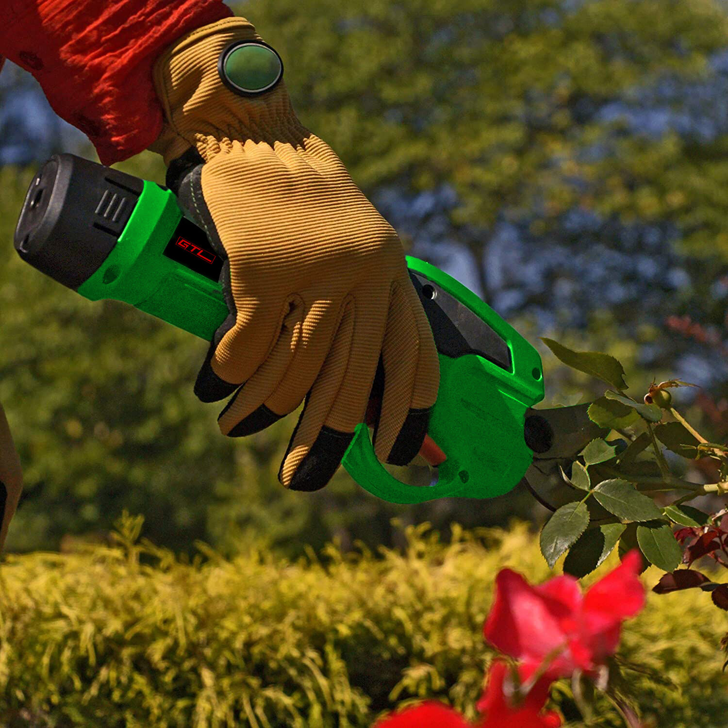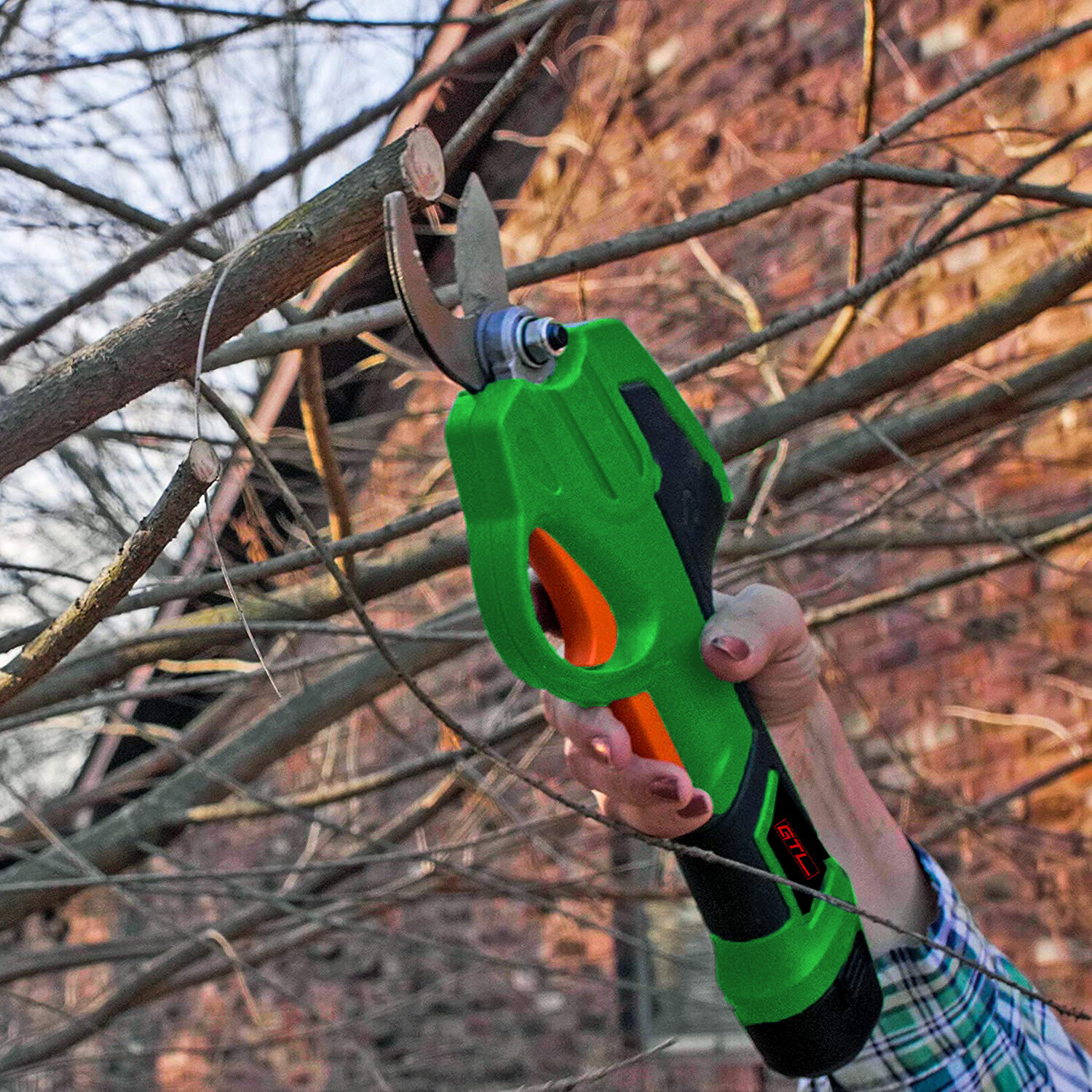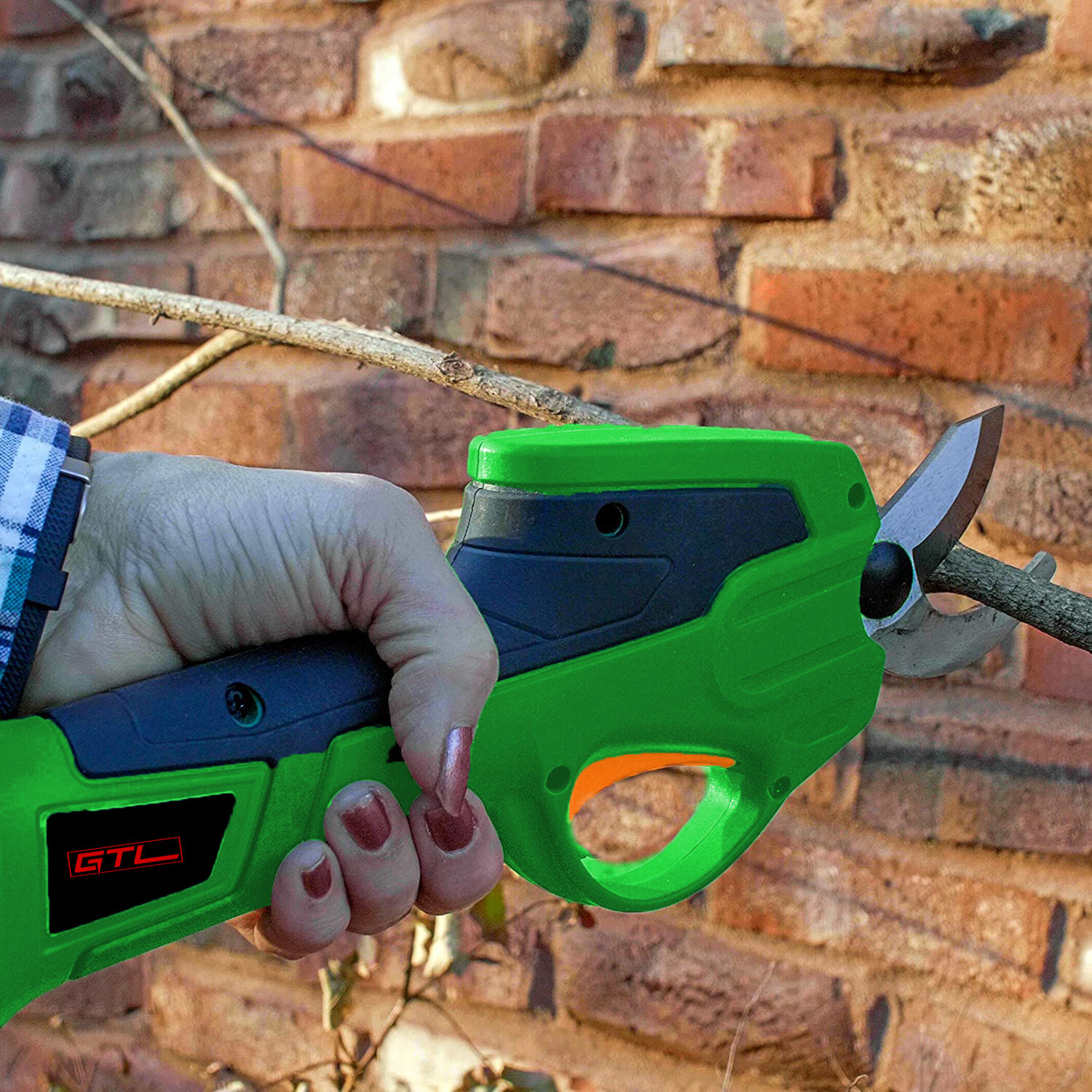 Cuchilla afilada que corta con suavidad: La cuchilla de esta tijera de podar eléctrica inalámbrica está forjada en acero para resortes de 65Mn. Este material es duradero y afilado, lo que permite cortar ramas de 28 mm de diámetro con suavidad y sin dañarlas.