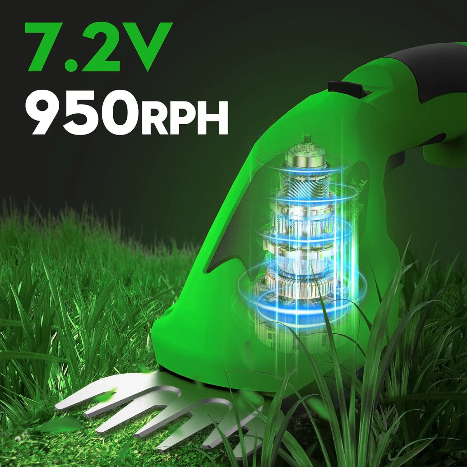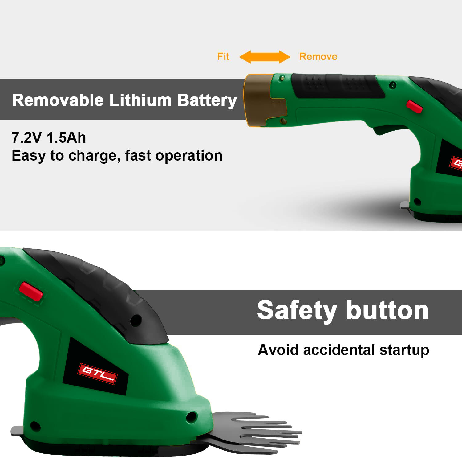 Rechargeable Design: Long-life, rechargeable, 7.2 V lithium-ion battery for hassle-free, cordless operation (battery charger included). The trimmer can be operated for approx 40 minutes with full charge and the lawn mower is approx 50 minutes, with a charging time of approx 3-5 hours for a full charge.