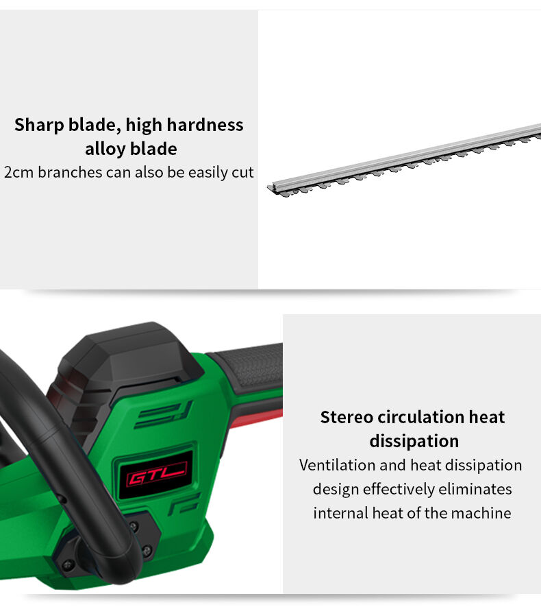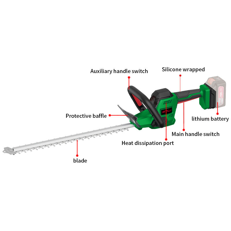 The CDHT008-20V is a versatile and powerful cordless trimming tool with a 20V DC battery, featuring a 400W motor, 1600 RPM speed, 500mm cutting length, and 17mm cutting diameter, along with safety and protection features for reliable and efficient outdoor trimming tasks.