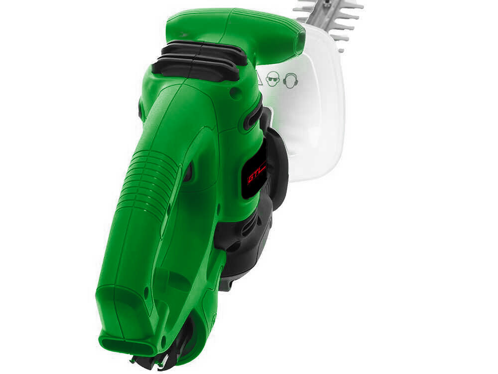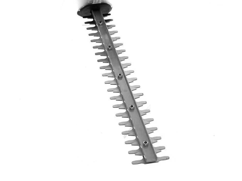 Cuchilla de corte: Equipada con una cuchilla de 50 cm, es capaz de cortar superficies y bordes planos, manteniendo la agilidad suficiente para recortar esquinas. Con un diámetro de corte de 1,6 cm, puede recortar fácilmente la mayoría de los setos pequeños y medianos.