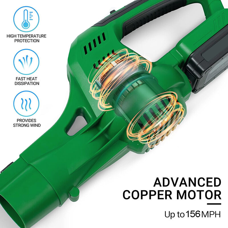 Con tecnología de turbina mejorada y un diseño de entrada de aire de doble cara, esta aspiradora de hojas inalámbrica ofrece una impresionante potencia de 250 km/h y 168 CFM, a la vez que reduce el consumo de energía. Además, su avanzado motor sin escobillas mejora la disipación del calor en un 70 % y reduce el desgaste en un 85 %, prolongando significativamente su vida útil en comparación con los motores convencionales.