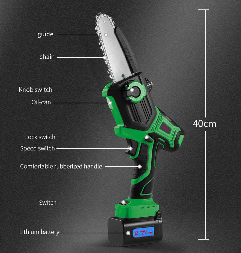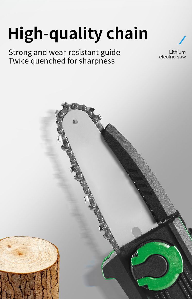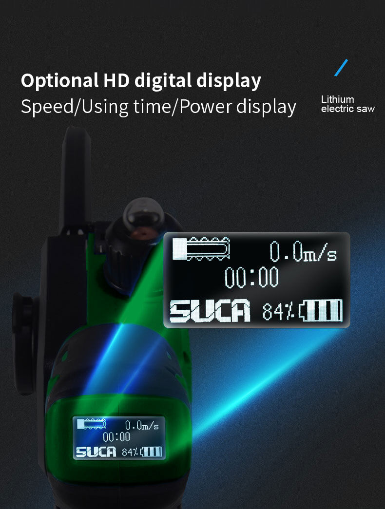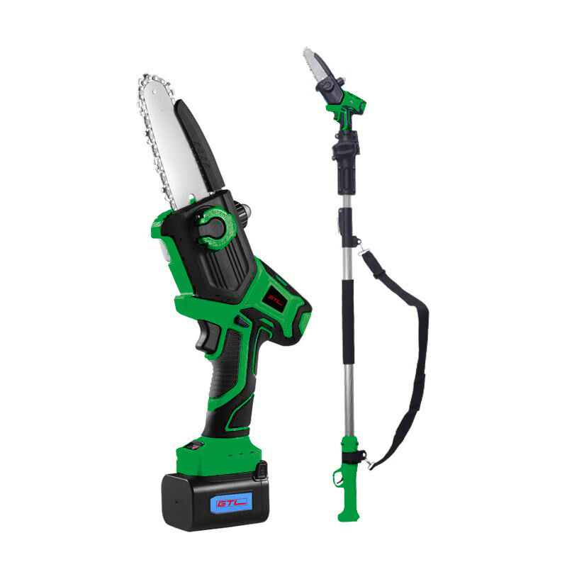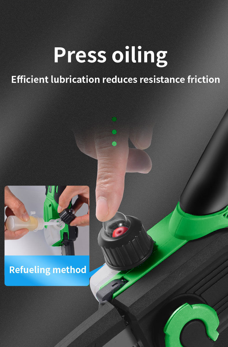 The cordless chain saw is a versatile, lightweight, and efficient cutting tool with an HD digital display, efficient pressoiling lubrication system, optional extension bar for high-reach cutting, and multi-function capabilities for various cutting tasks, all powered by a lithium battery for immediate readiness and convenience.
