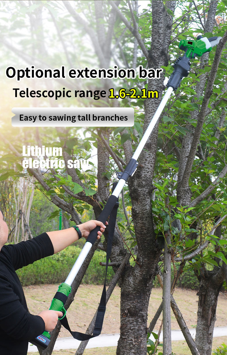 Optional Extension Bar: Includes an optional extension bar with a telescopic range from 1.6m to 2.1m, making it easy to cut tall branches.