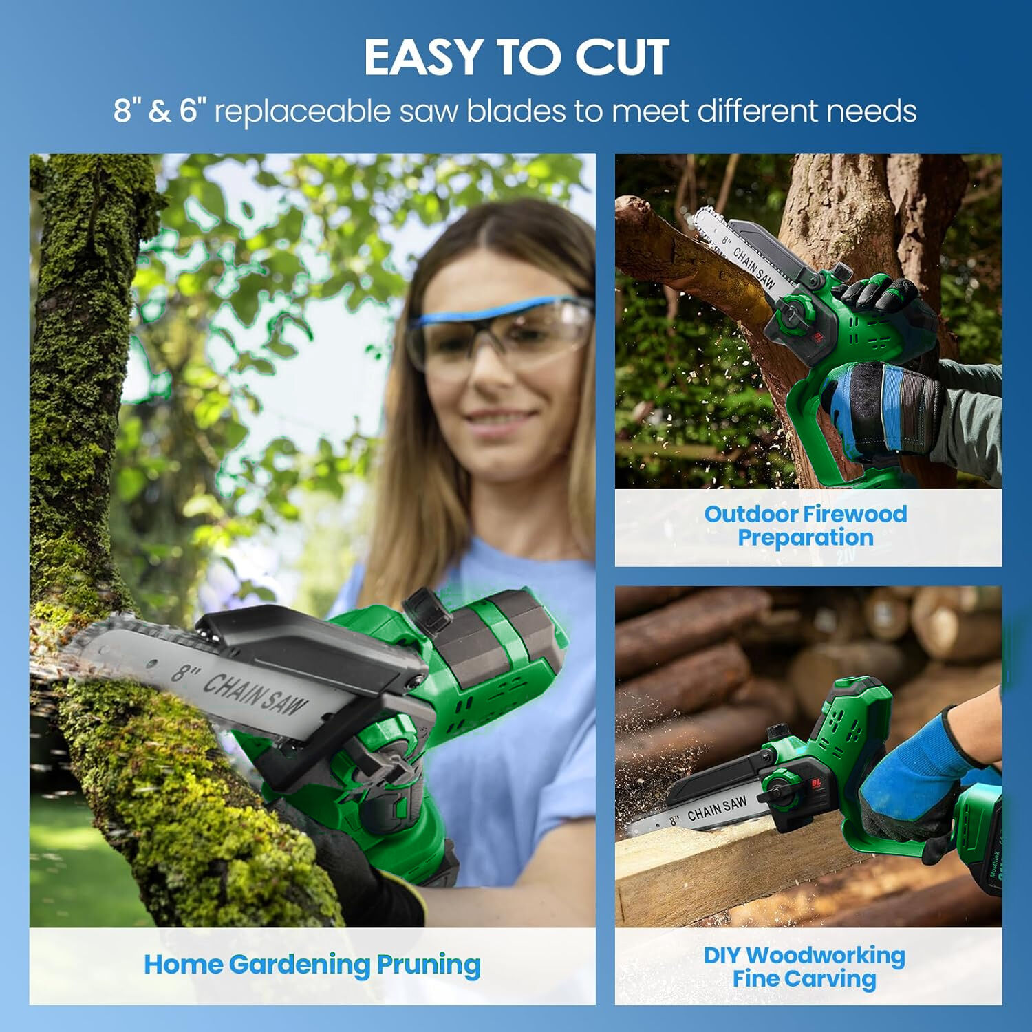 Equipped with two 4000mAh high-capacity batteries, enjoy 120+ cuts per charge and seamless runtime. The dual-system design enables instant battery swaps for zero downtime, perfect for extended projects like lumber processing or garden pruning