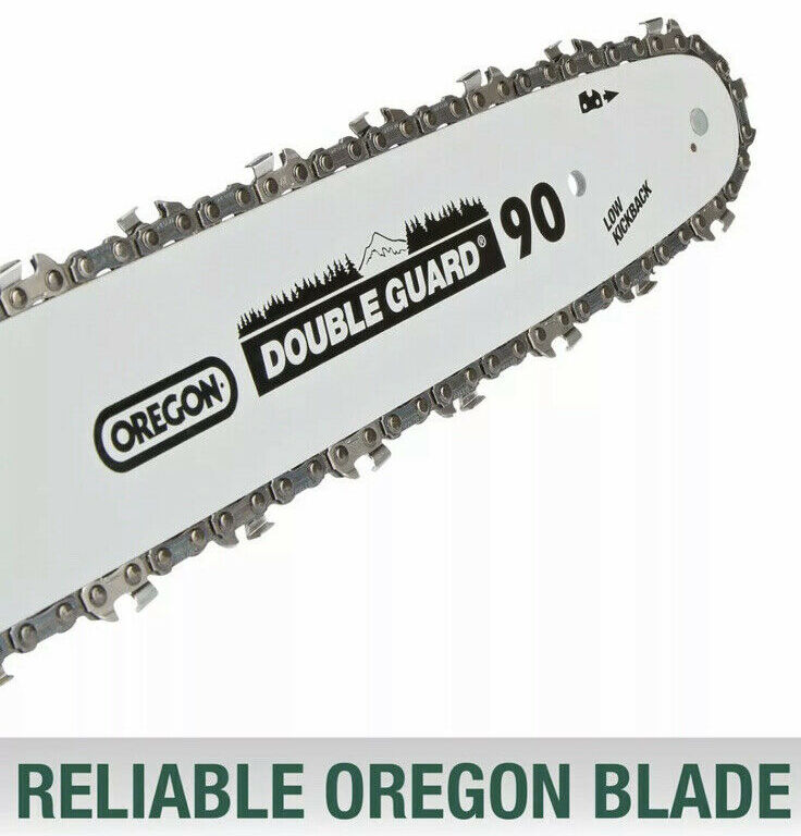 14" Oregon Chain: battery operated chainsaw features 14" oregon bar & chain for cutting small to medium-sized wood. Tool control and cutting are made truly easy with a metal bumper spike and an ultra light weight at only 4kg.