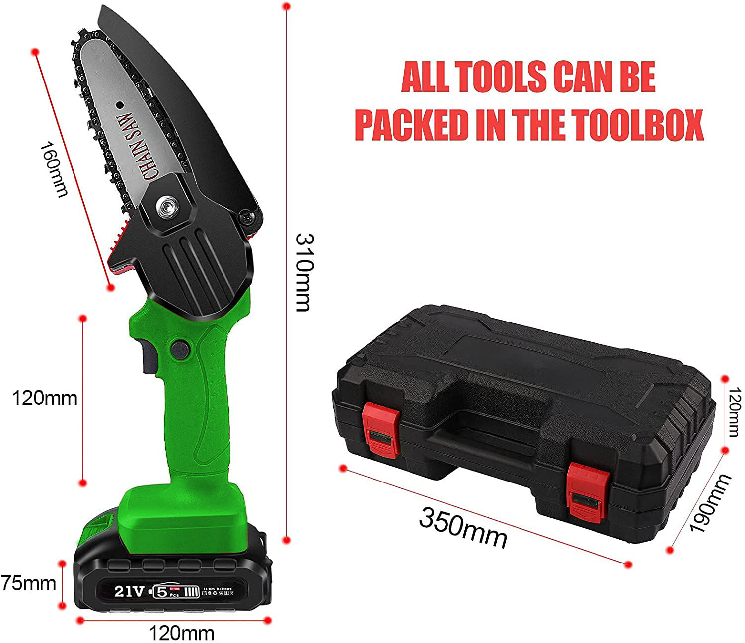 One-handed Use -The handheld small mini chainsaw is light in weight and can be easily controlled with one hand. It's not tired to hold for a long time. The portable chainsaw also suitable for women. Small in size, easy to carry.