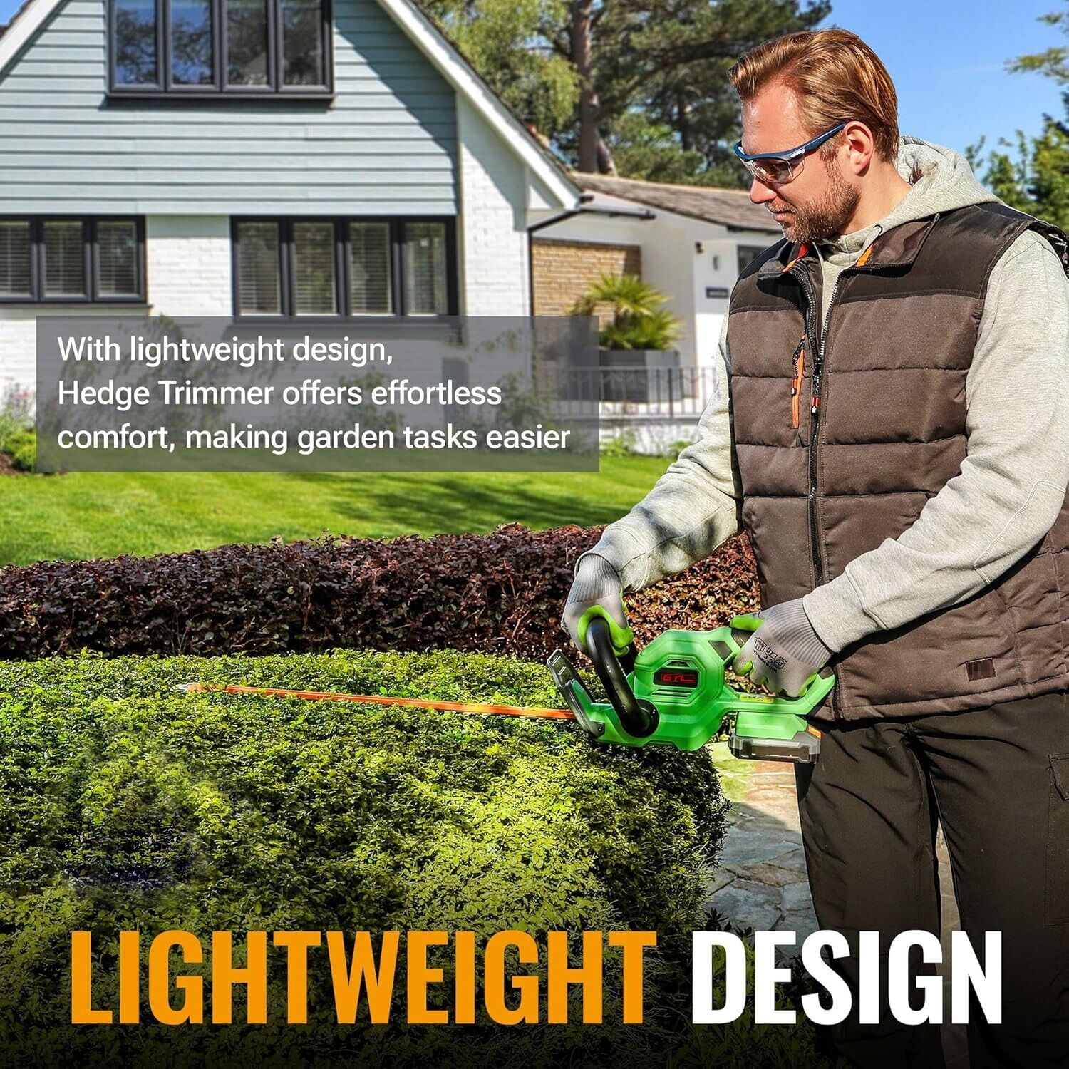 Seguro de usar: La protección negra en la parte trasera de la cuchilla le protege de los residuos que salen despedidos durante el corte. Los interruptores de seguridad dobles en el mango y la empuñadura envolvente evitan la activación accidental, garantizando una experiencia de corte segura y sin preocupaciones.