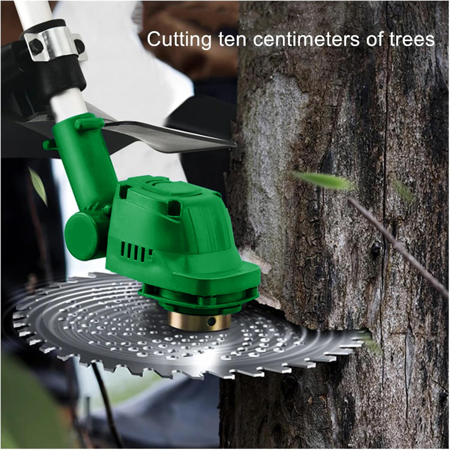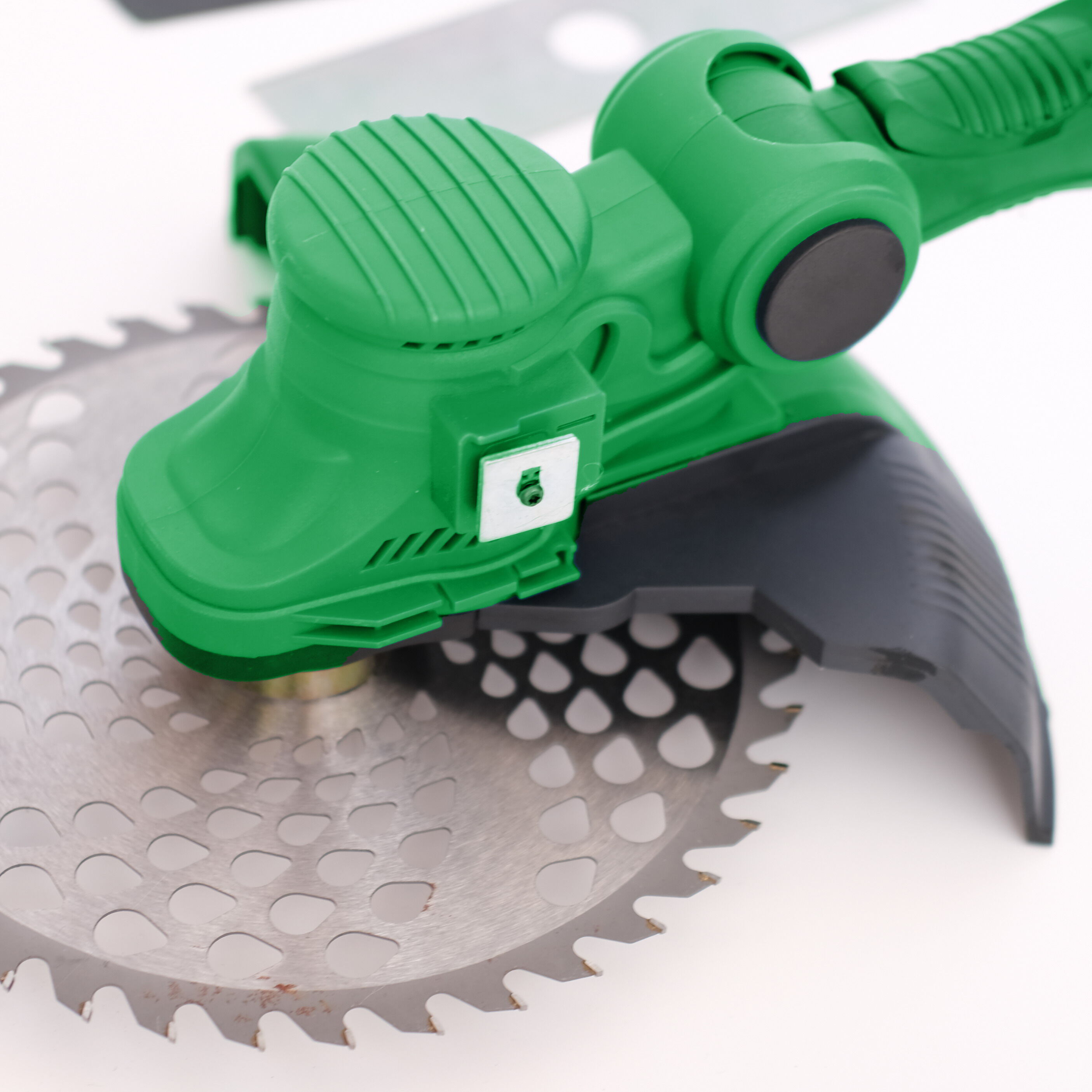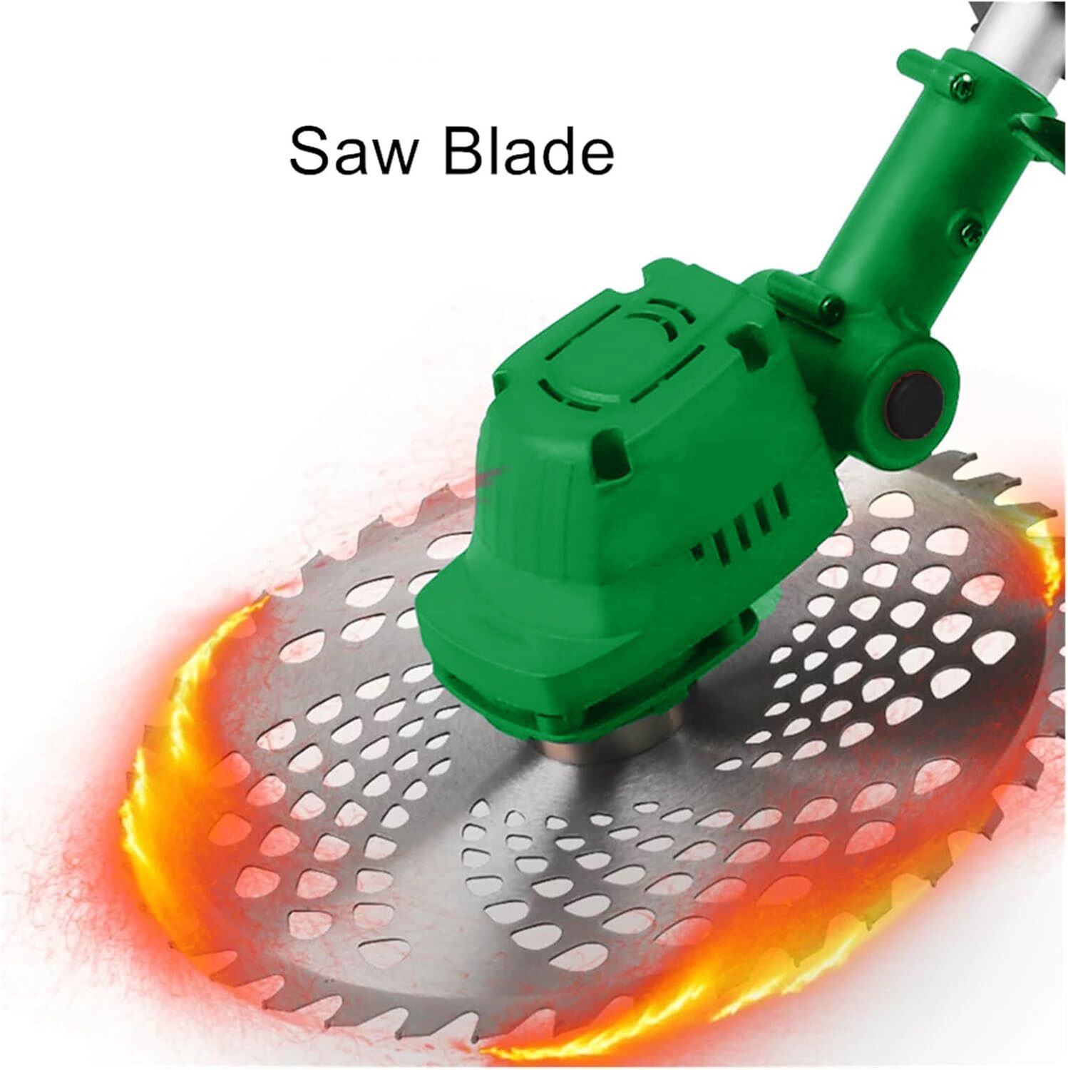 La desbrozadora inalámbrica incluye una cuchilla de carburo de tungsteno y dos cuchillas de 2 dientes, además de un cabezal para cortar césped, malas hierbas y arbustos pequeños, y la hoja de sierra circular está diseñada específicamente para cortar arbustos más gruesos.