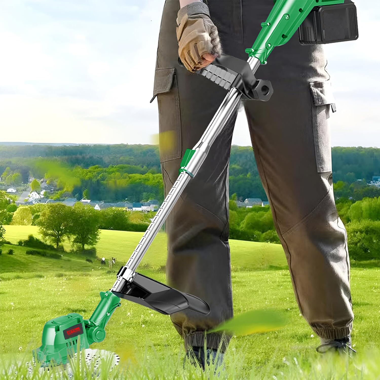 Amplia aplicabilidad: Nuestra desbrozadora inalámbrica no está limitada por cables, lo que le permite cortar el césped y eliminar las malas hierbas en cualquier lugar con facilidad. Es perfecta para diversos entornos, incluyendo jardines, parques, granjas, huertos e invernaderos, ayudándole a ahorrar tiempo y a conseguir un césped impecable.