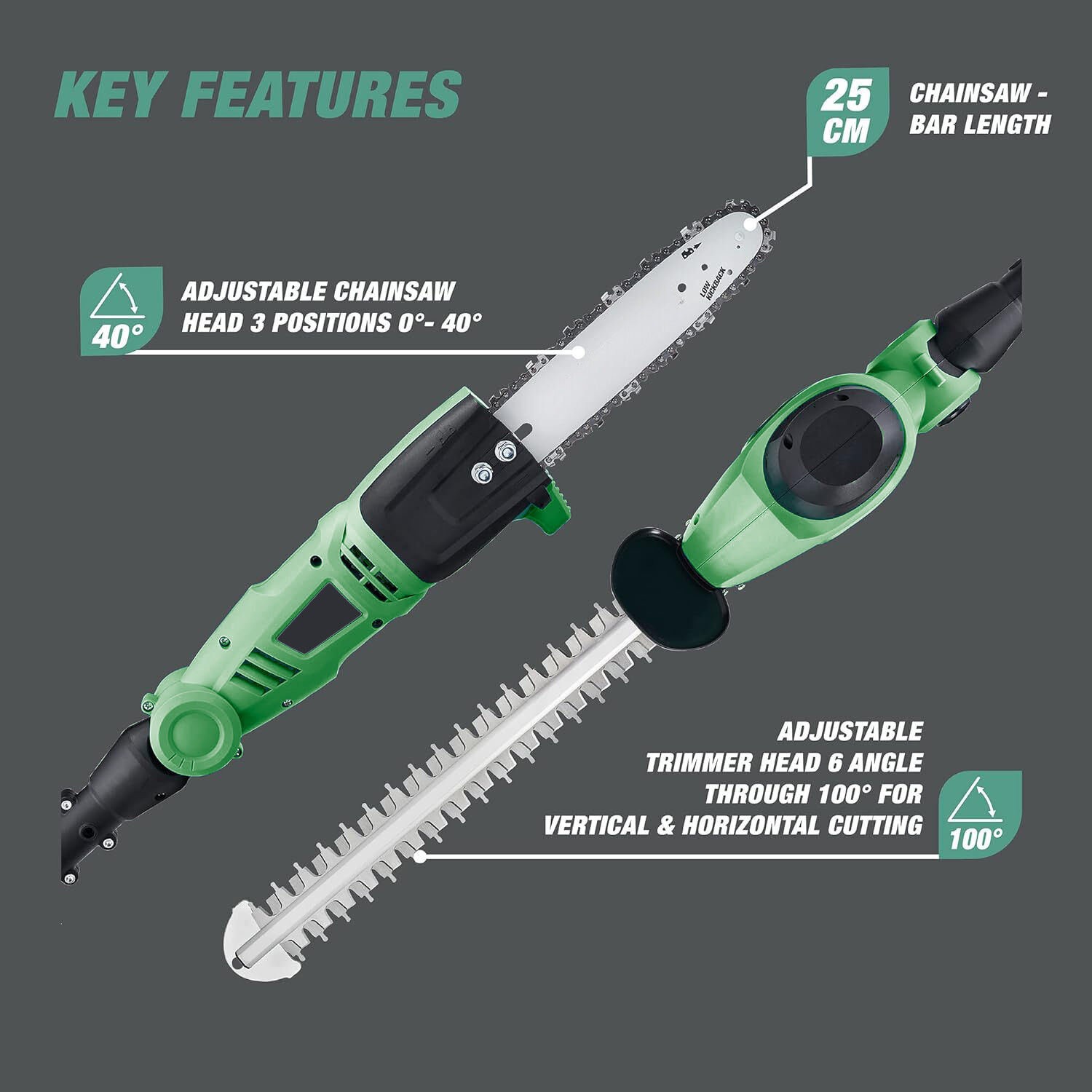 Efficiency and Power: With powerful motors for both the chain saw and hedge trimmer, this tool is designed for quick and efficient cutting tasks.