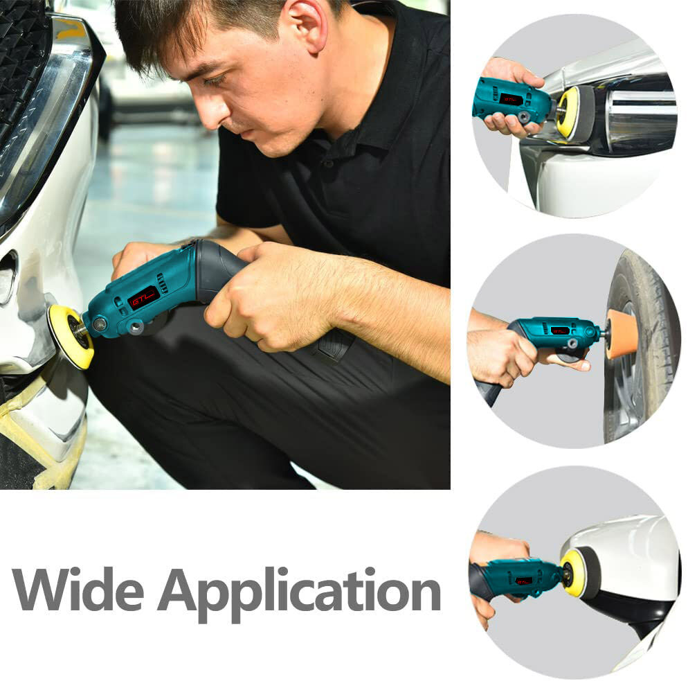 Lightweight & Portable: The cordless polisher weighs only 1.65 pounds, making it easy to carry and store. It is a handy tool for small areas and hard-to-reach spots, and is ideal as an auxiliary tool.
